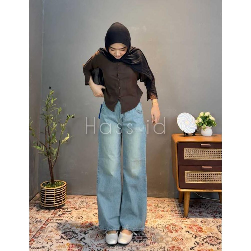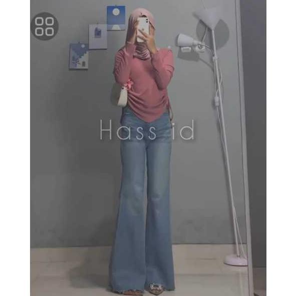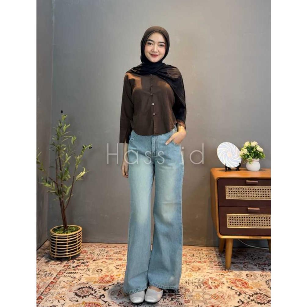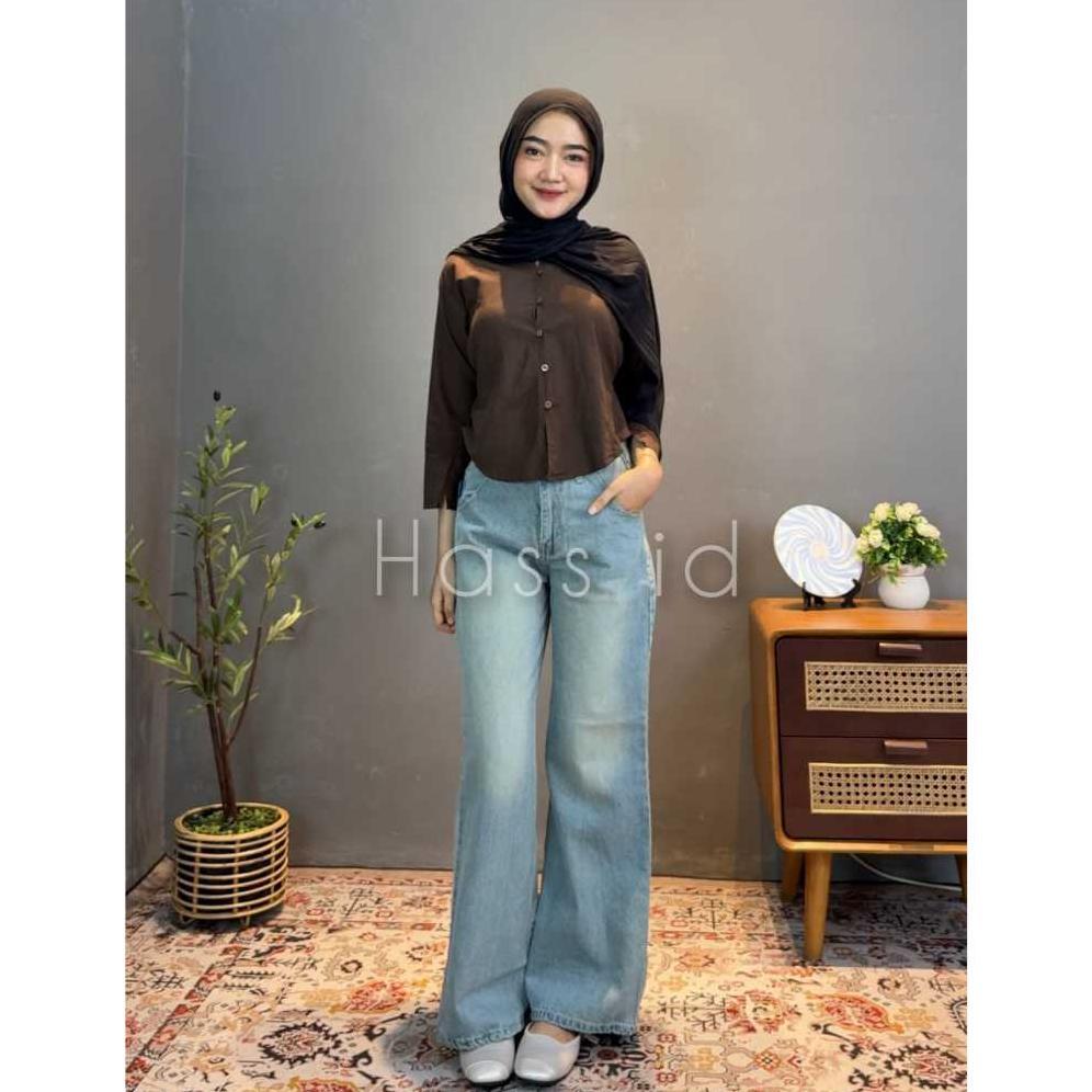 Sale Hass id Flare Jeans Wanita Vintage Retro Biru Blue Celana Denim Wanita Gaya Retro dengan Desain Flare Lebar - Flare Jeans Retro Vintage Biru - Celana Flare Jeans Wanita Wide Leg