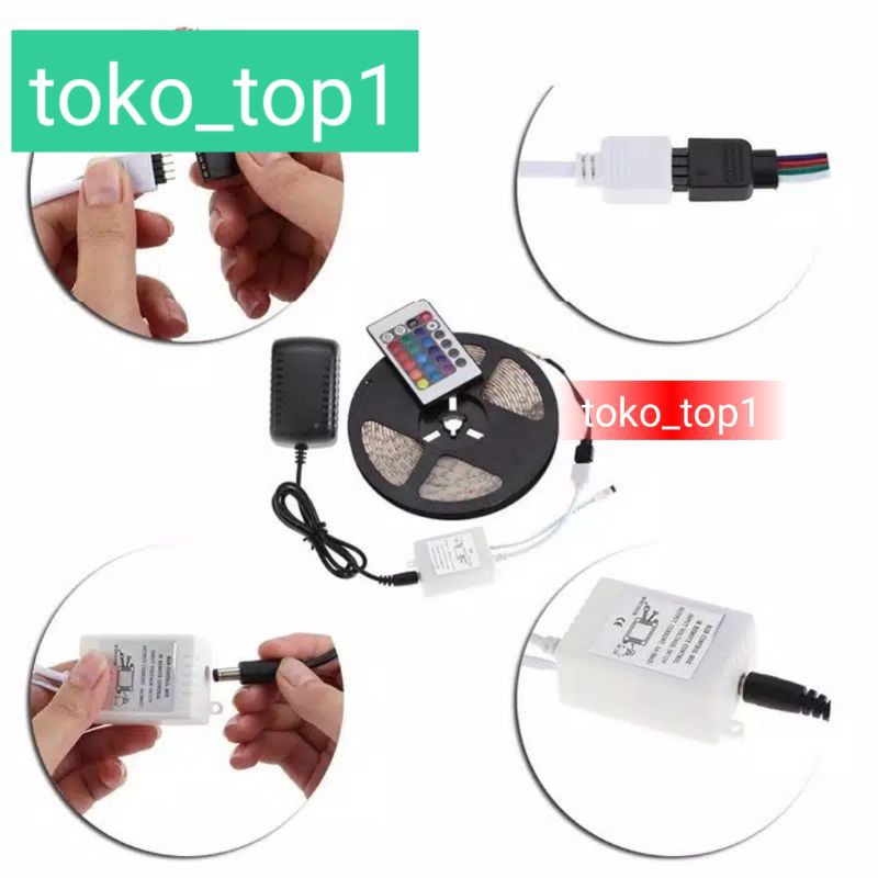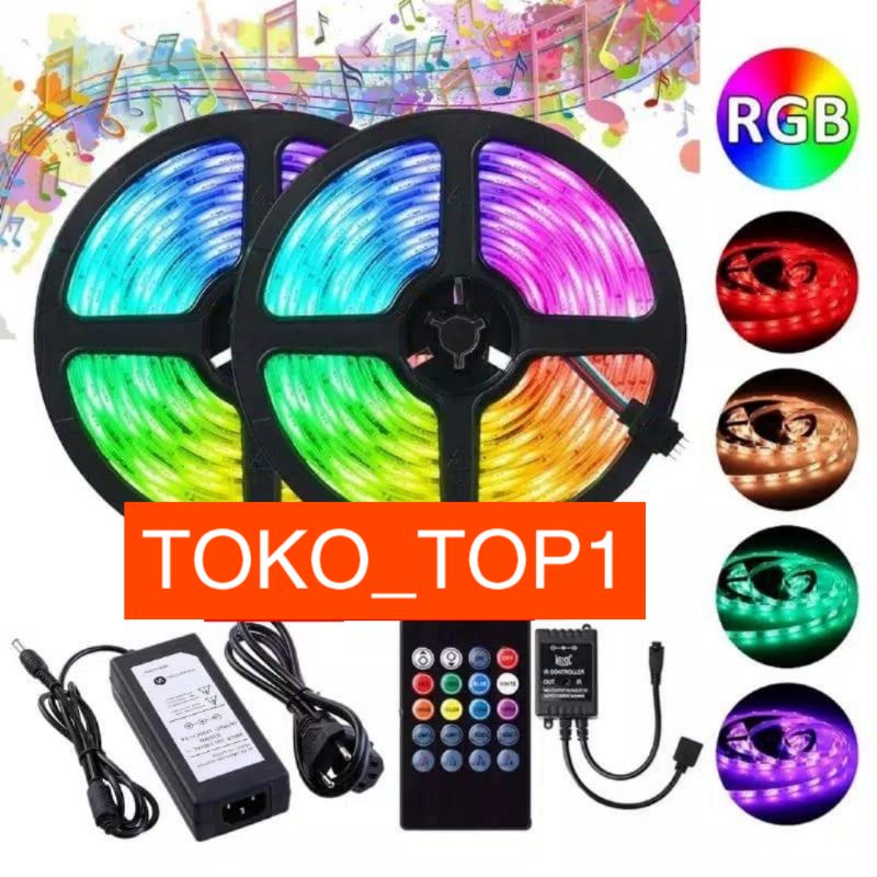 PAKET Lampu Led Strip 5050 2835 3528 RGB 5M 10M IP44 IP33 Remot /10m remot set/lampu strip rgb remot