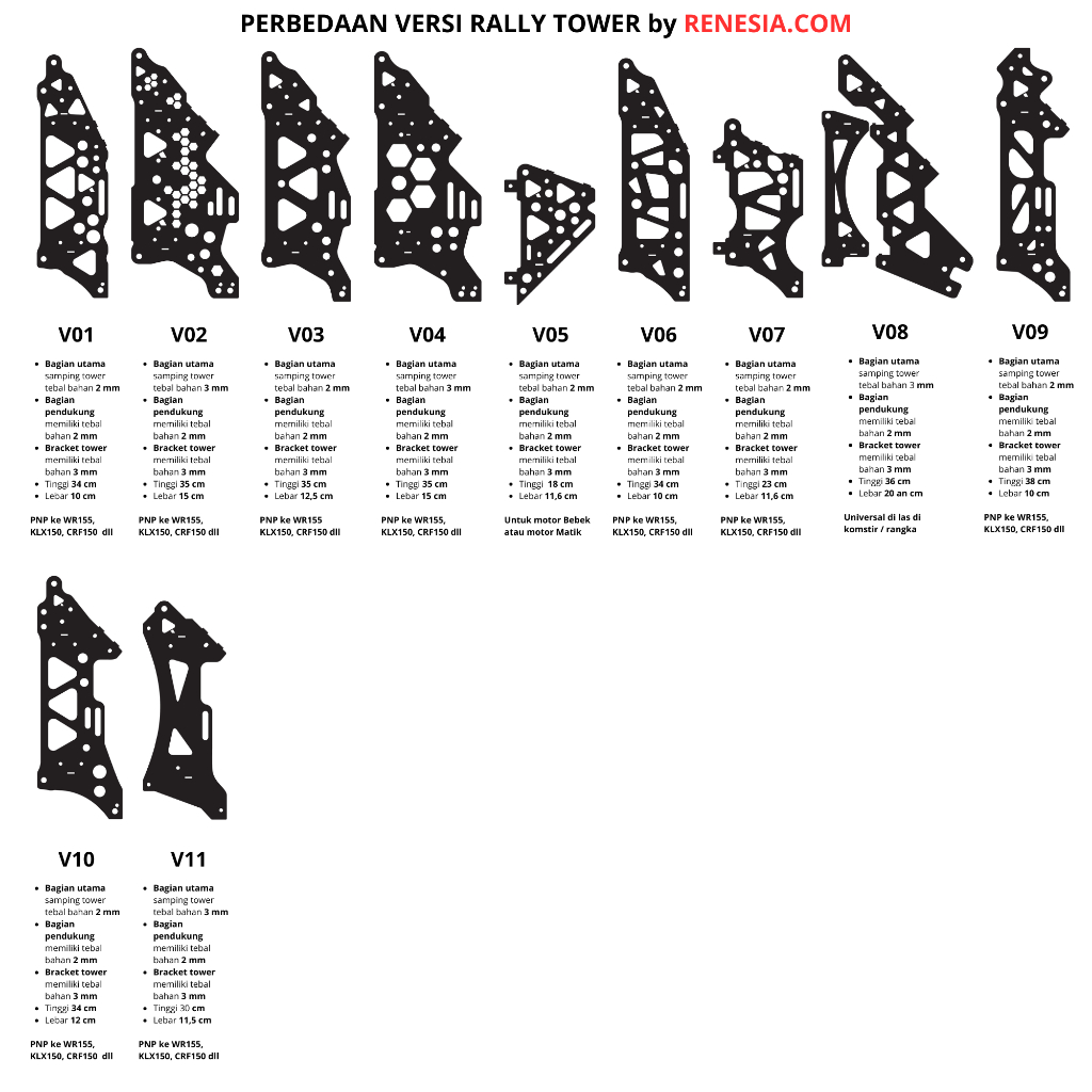 RENESIA STAINLESS STEEL 304 - Rally Tower WR155 CRF150 KLX150 CB150R KLX250 KLX230 Z250 GSX150 Bandit 150