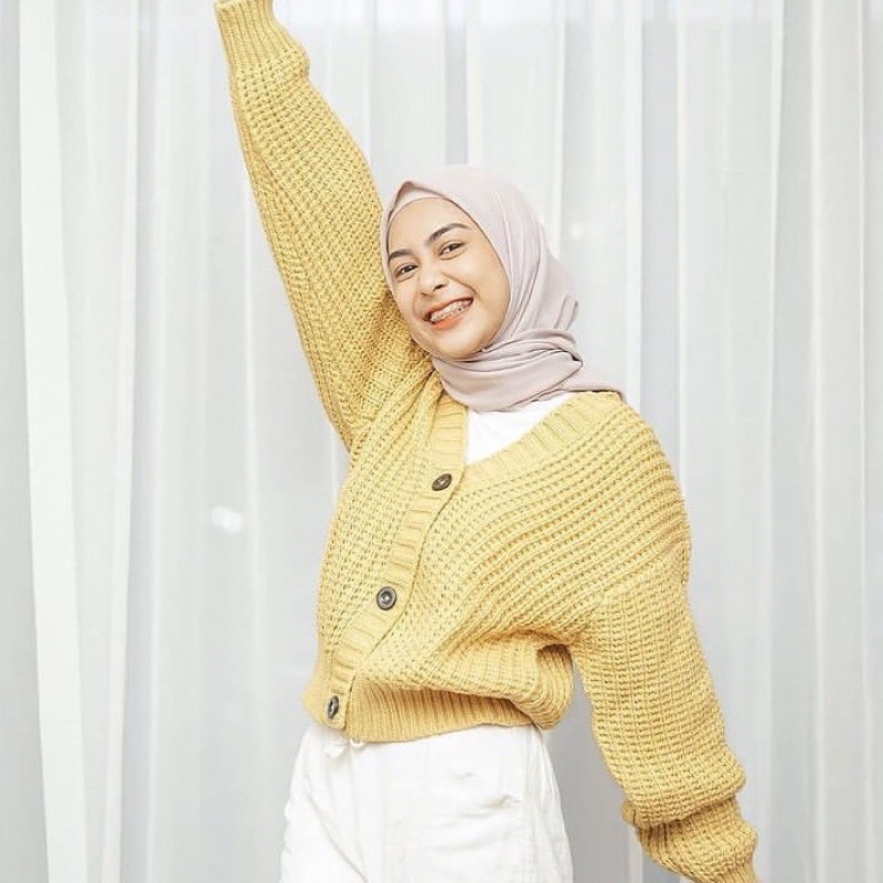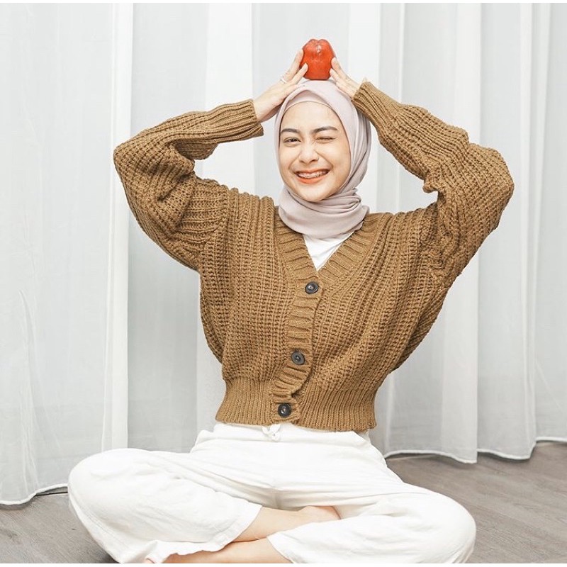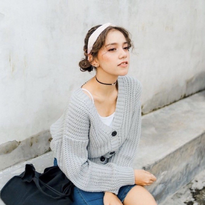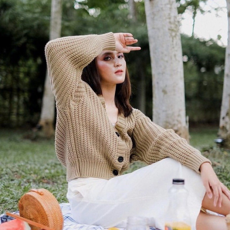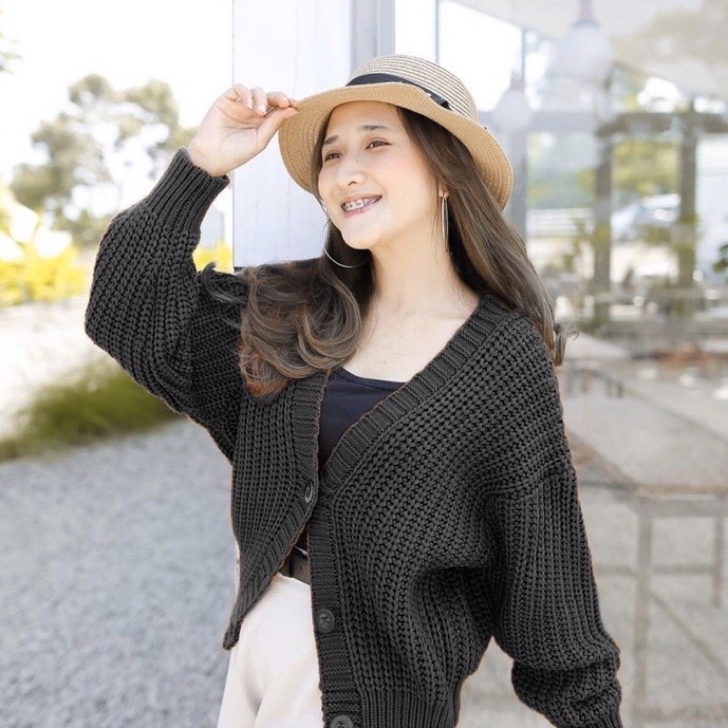 BRAID BUTTON CARDI CROP RAJUT TEBAL PREMIUM - CARDI 3 KANCIN - CARDI RAJUT CROP TANGAN BALON OVERSIZED - OUTER RAJUT OVERSIZED BAHAN TEBAL PREMIUM