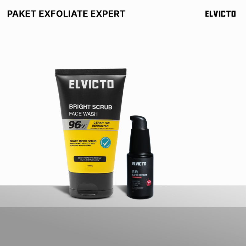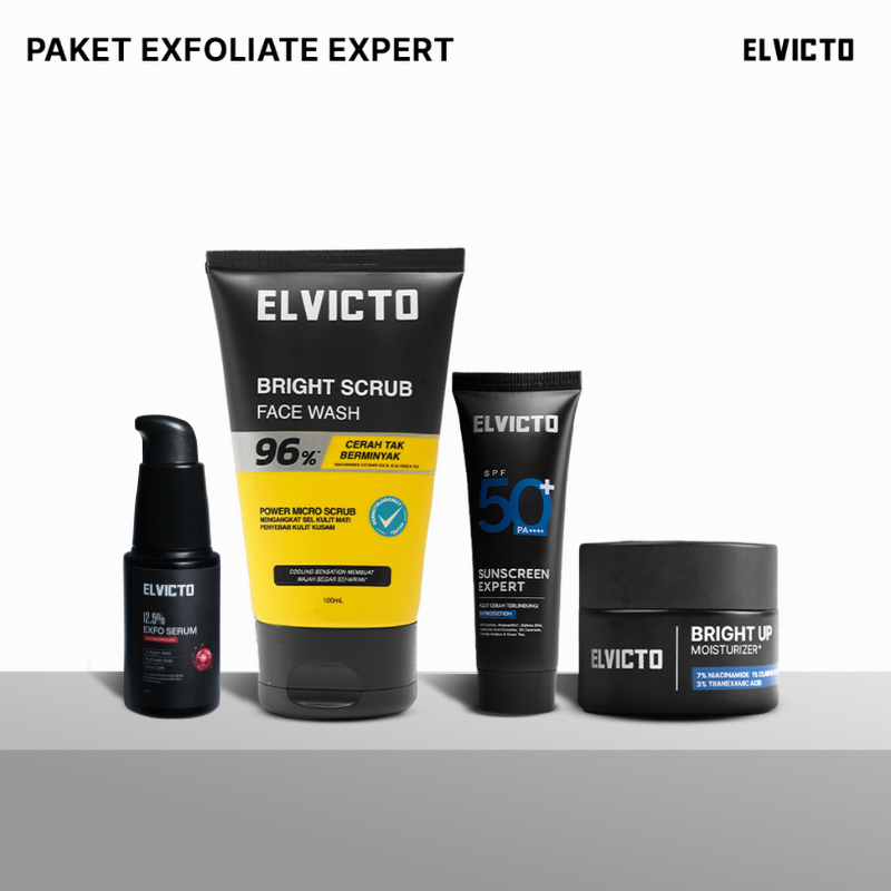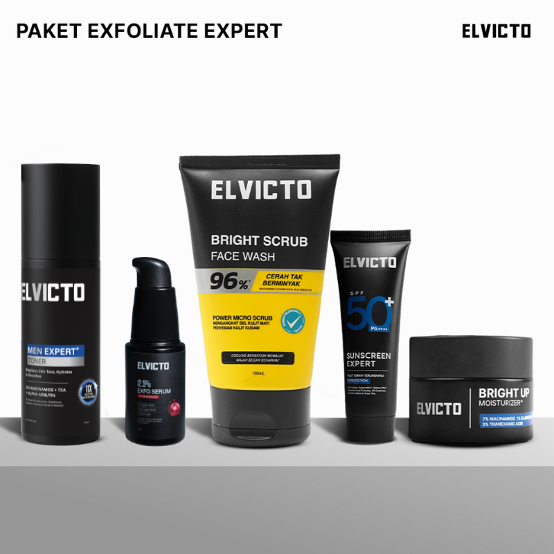 ELVICTO Paket Exfoliate Expert | Face Wash Toner Serum Moisturizer Sunscreen - Triple Hidroxy Acid Aha Bha Pha - Mengangkat Sel Kulit Mati Mencerahkan Kulit Wajah Menyamarkan Kerutan Garis Halus