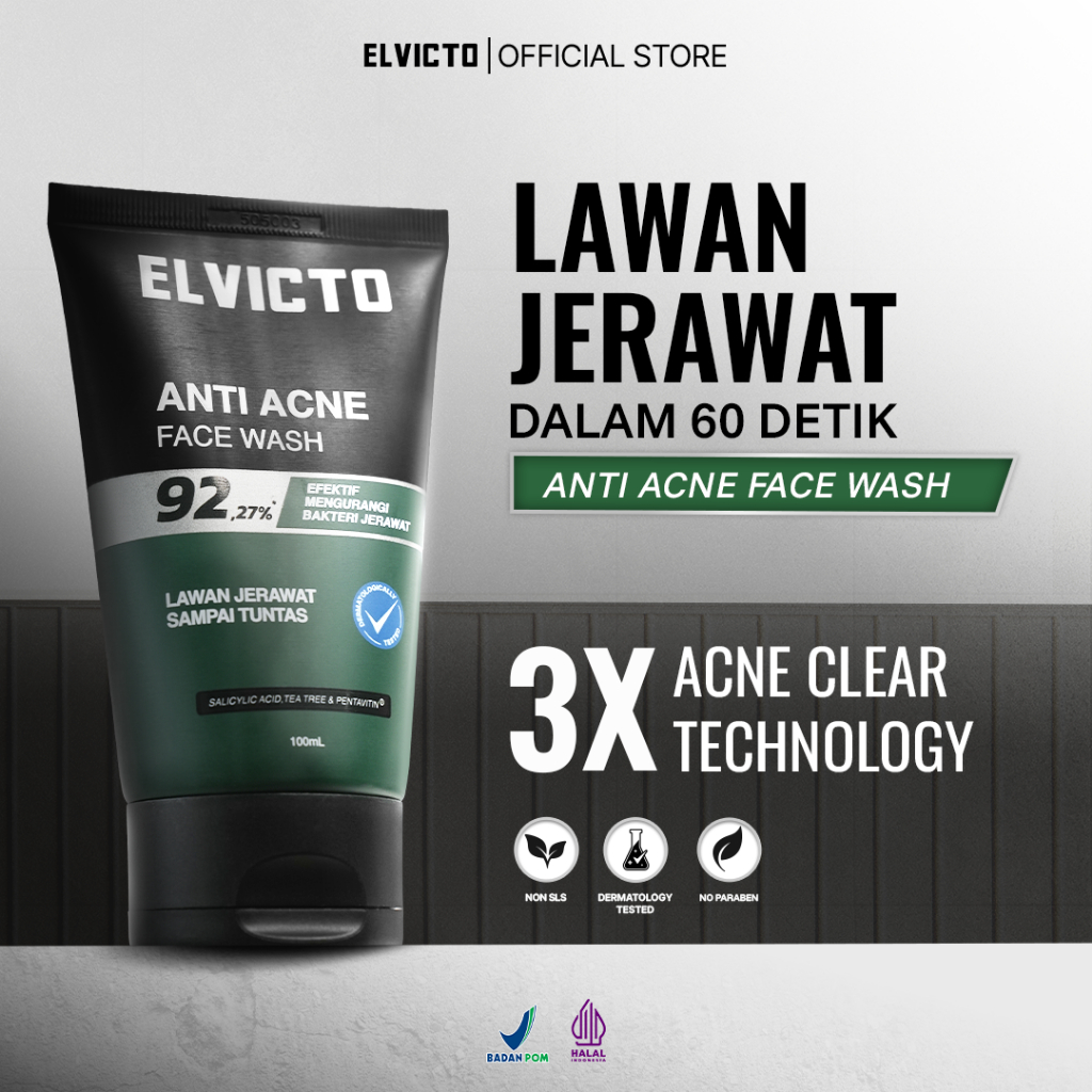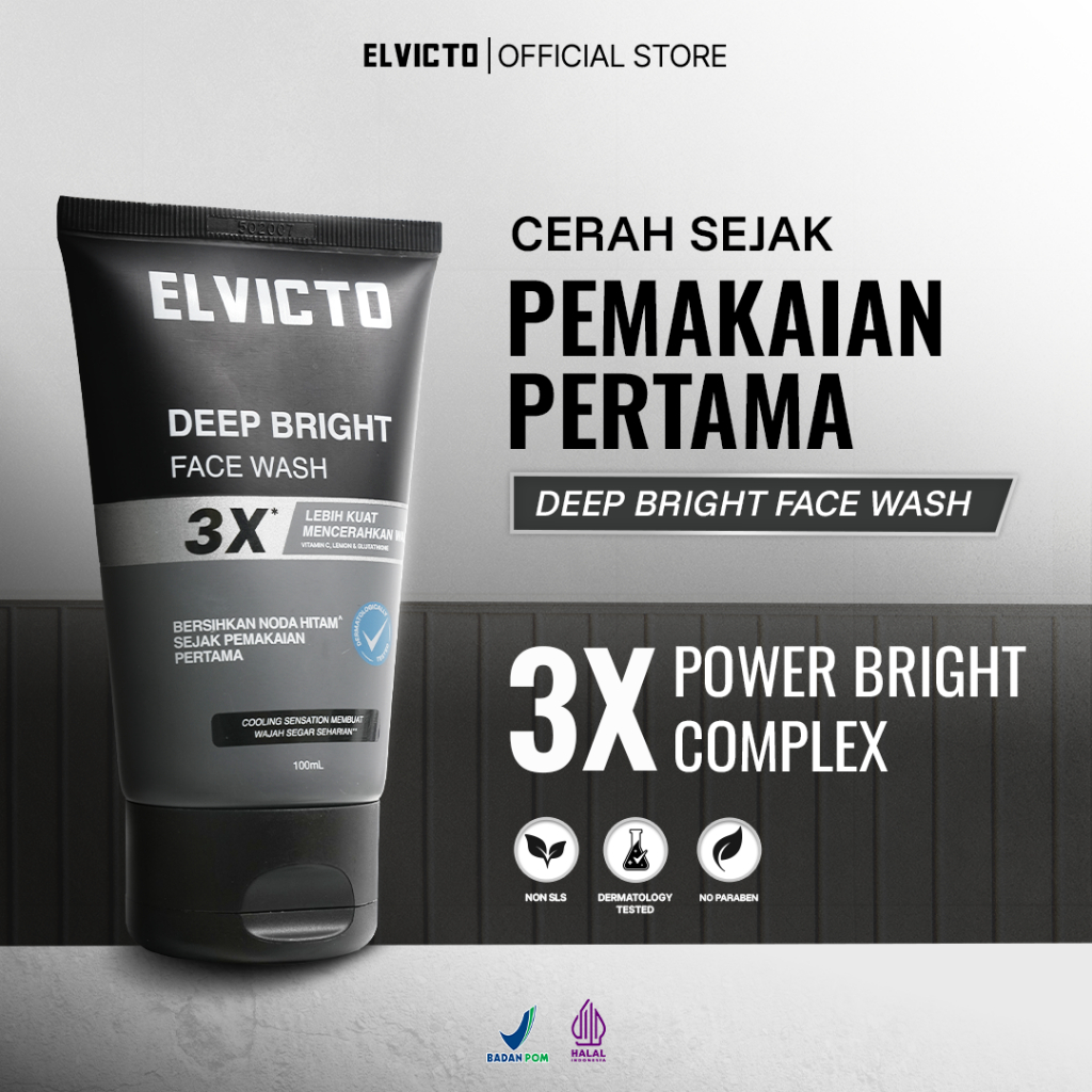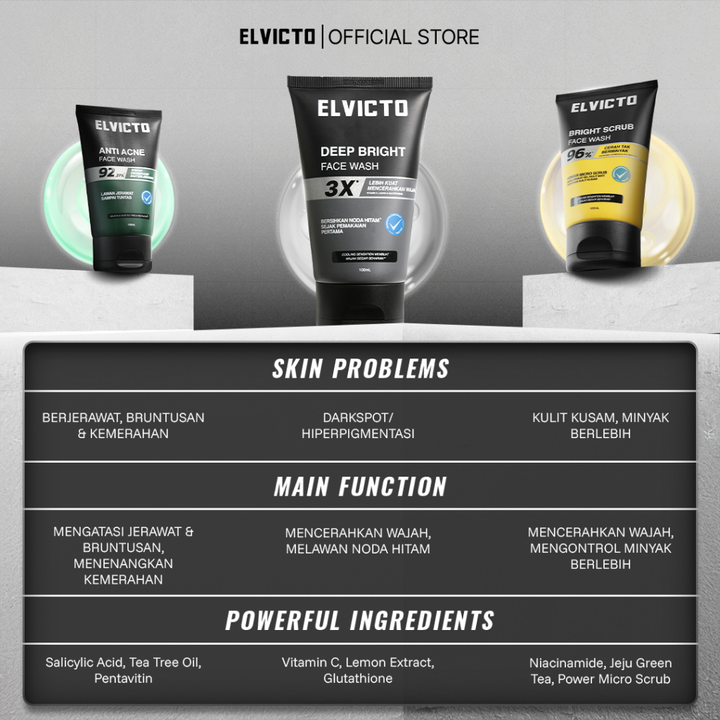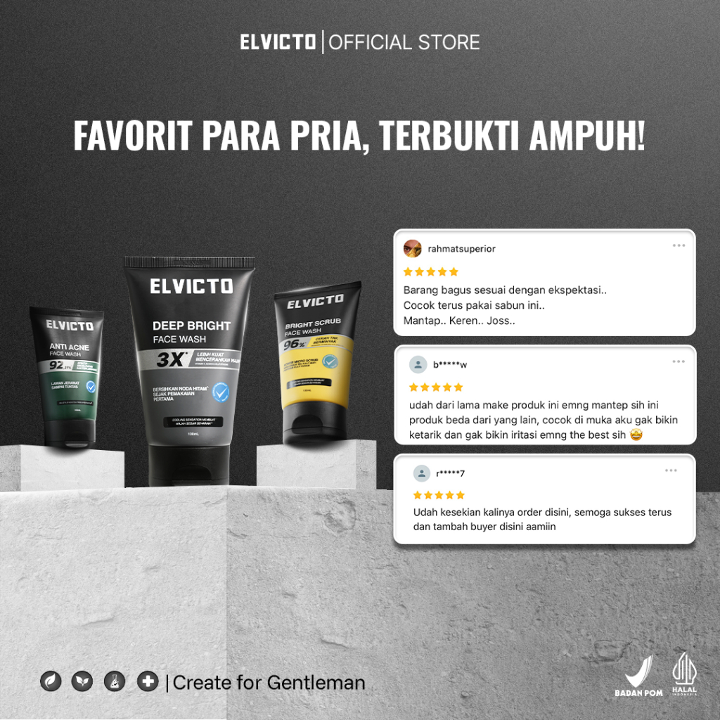 [NON SLS] ELVICTO FACE WASH 100gr | Face Wash Pria Sabun Cuci Muka Brightening Deep Clean 5 in 1 Charcoal Face Wash Oil Control Cleanser Pria Cooling Sensation Pencerah Wajah Pria Face Wash Brightening Face Wash Whitening Sabun Pemutih Wajah BPOM