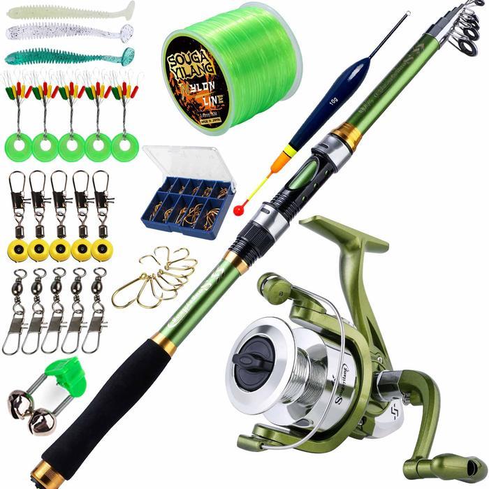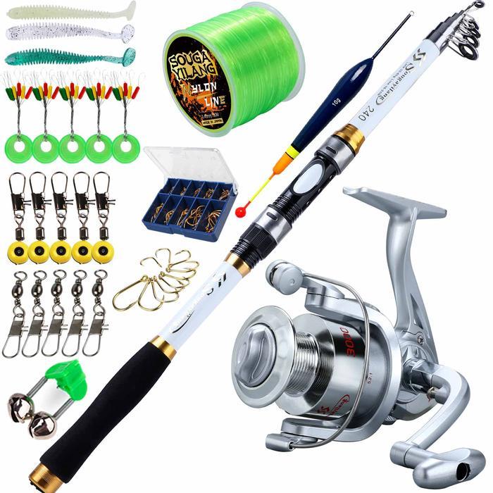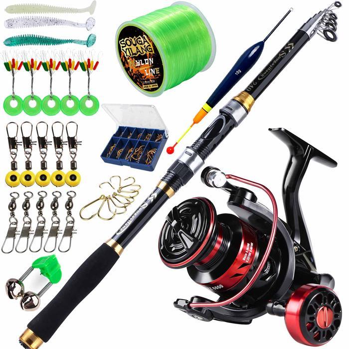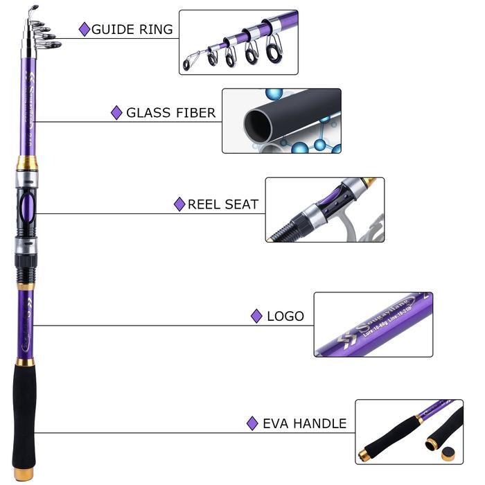 BERKUALITAS! Sougayilang Set Peralatan Memancing, Joran Pancing Teleskopik Serat Kaca 4 Warna