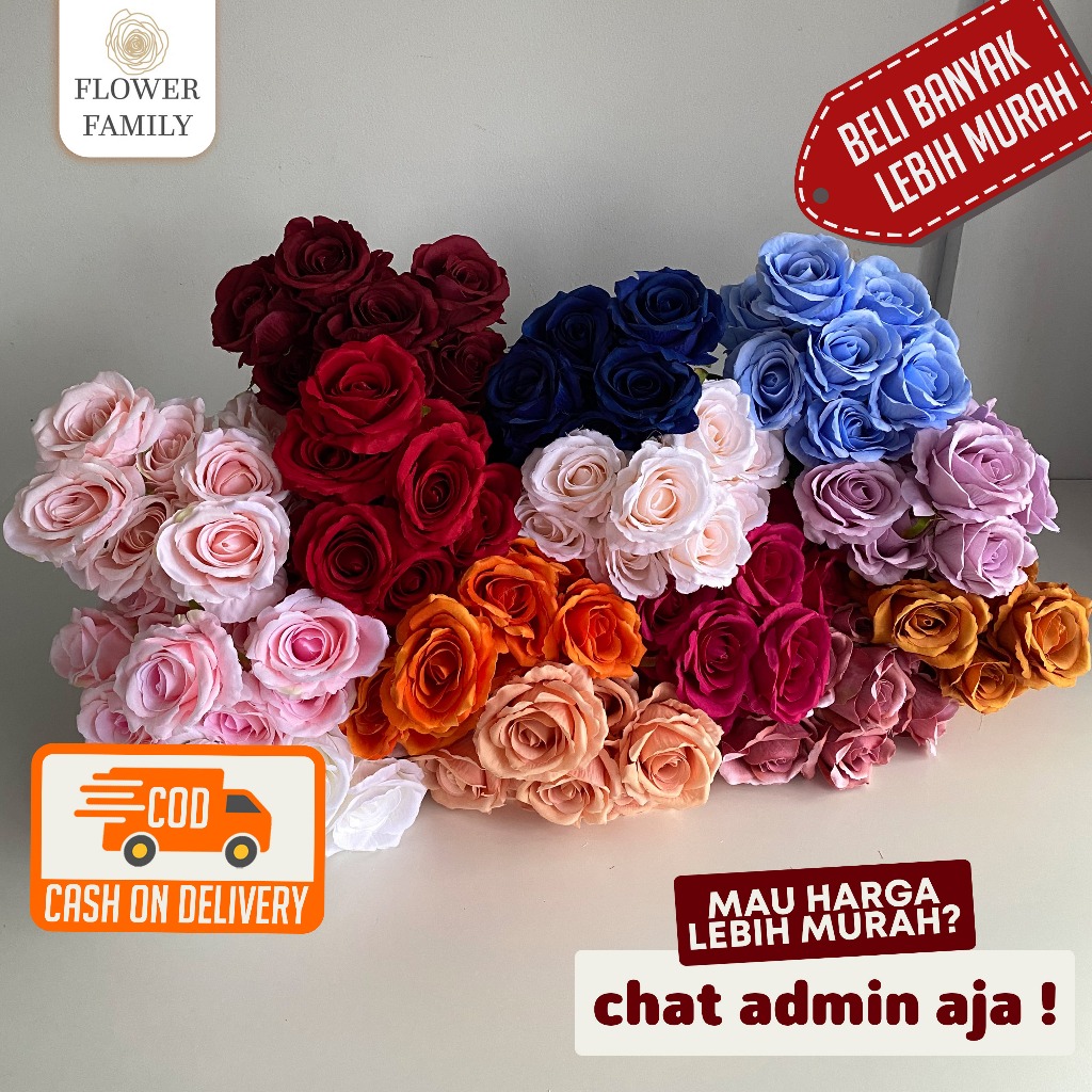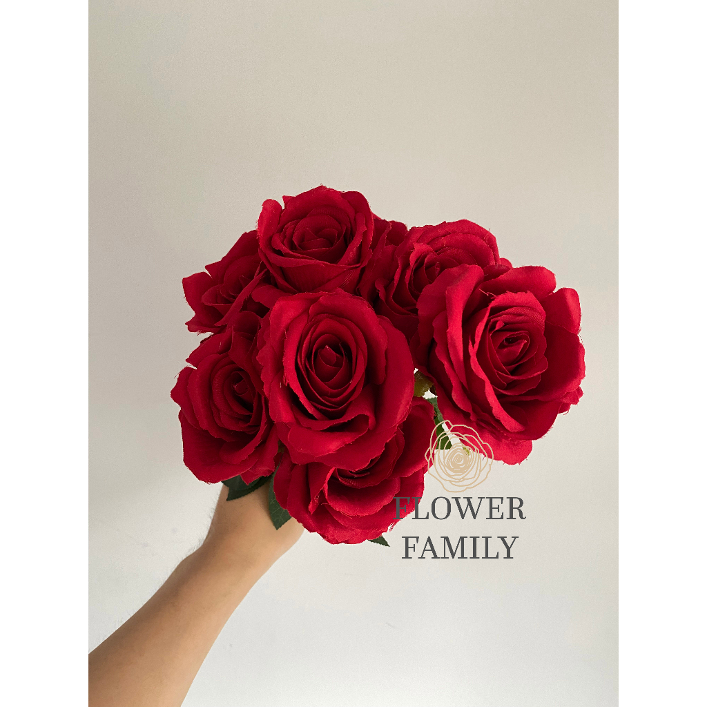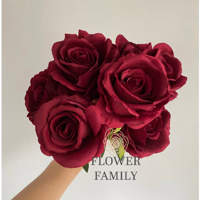 Flower Family - [9 Cabang] Rose Jumbo Artificial / Bunga Mawar JUMBO Plastik / Bunga Palsu / Bunga Dekor / Buket Hadiah