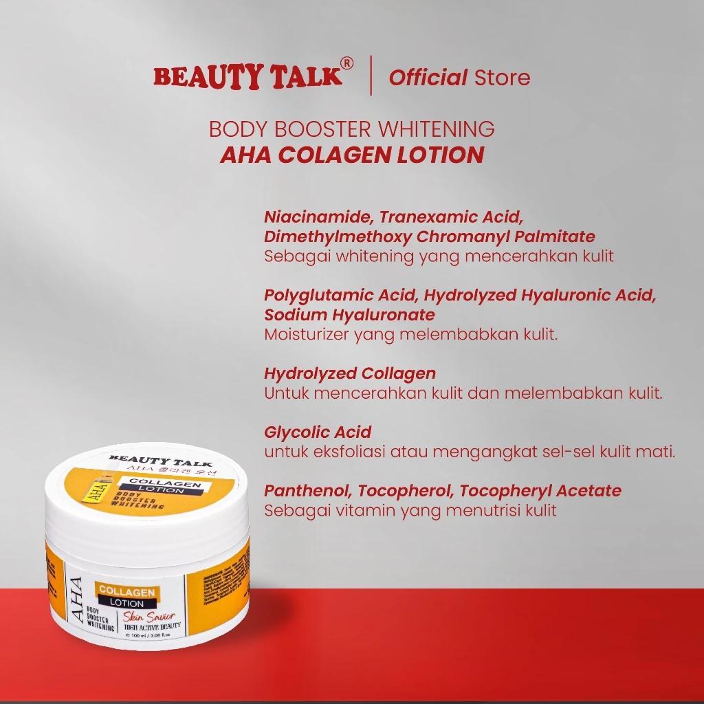BEAUTY TALK AHA Collagen Lotion 100ML - Whitening Lotion Pencerah Kulit Body Booster AHA Collagen Untuk Mencerahkan Kulit