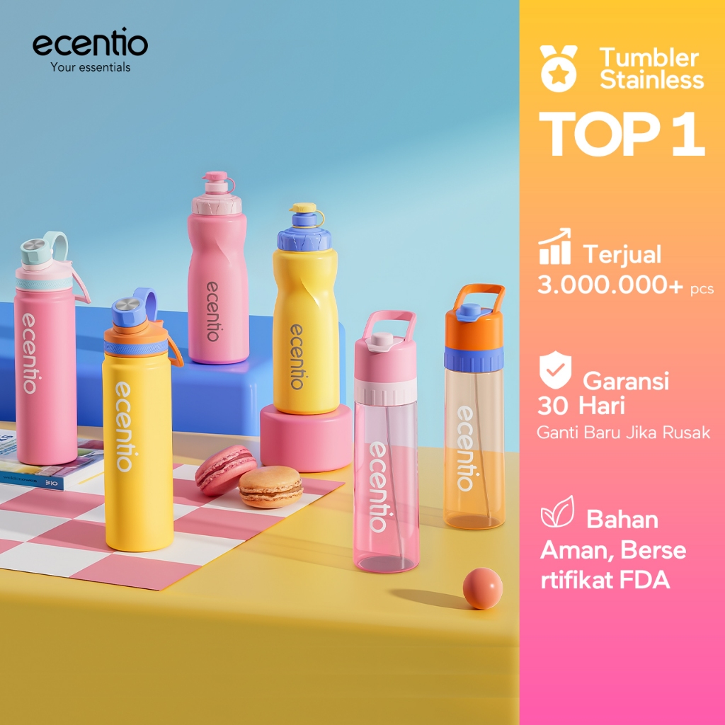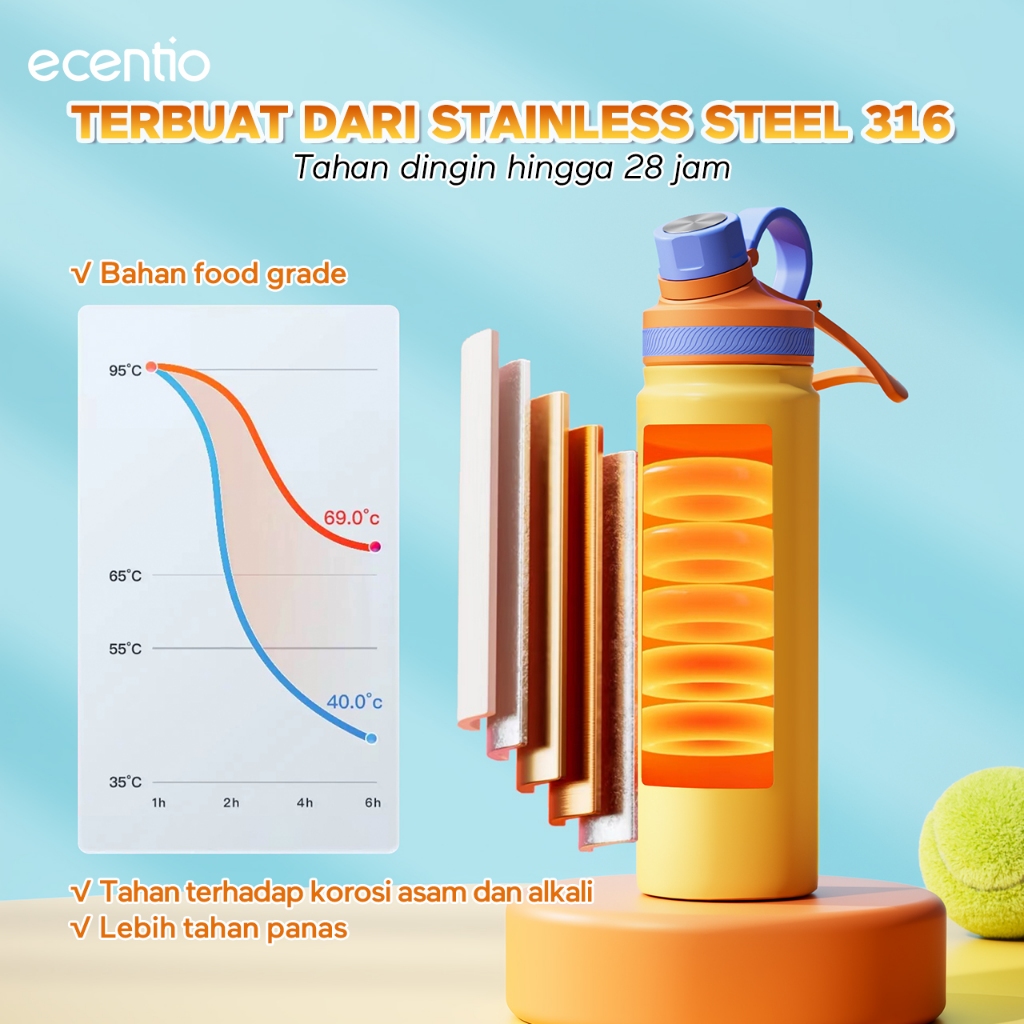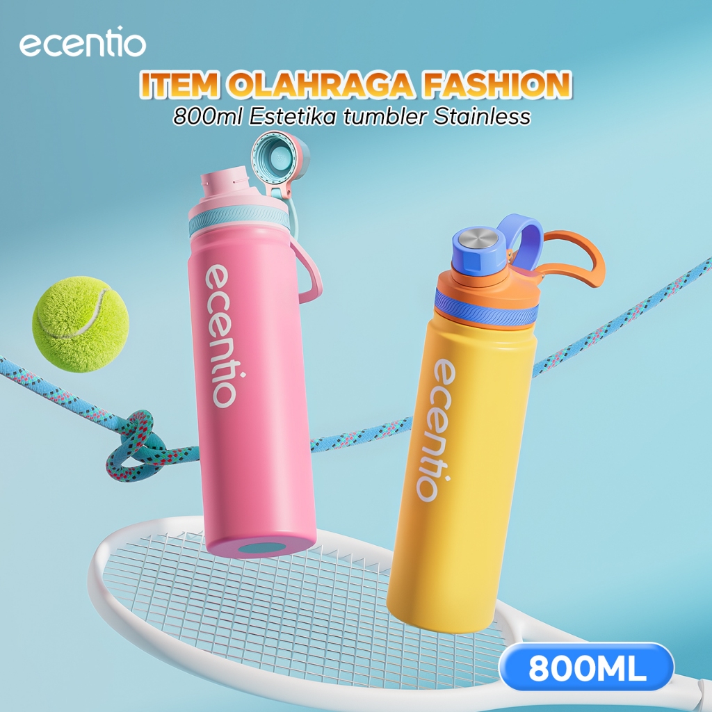 ecentio outdoor tumbler Stainless olahraga Vacuum 800ml sport aesthetic botol minum 650ml/750ml plastic lari Portable Tetap dingin selama 24 JAM Thermos Botol minum besar