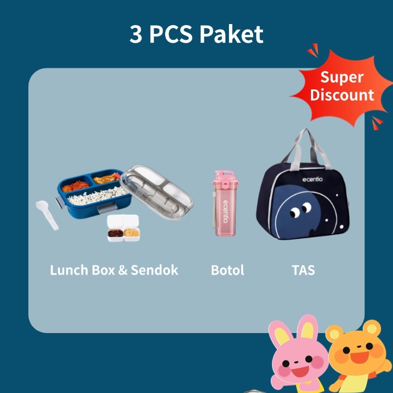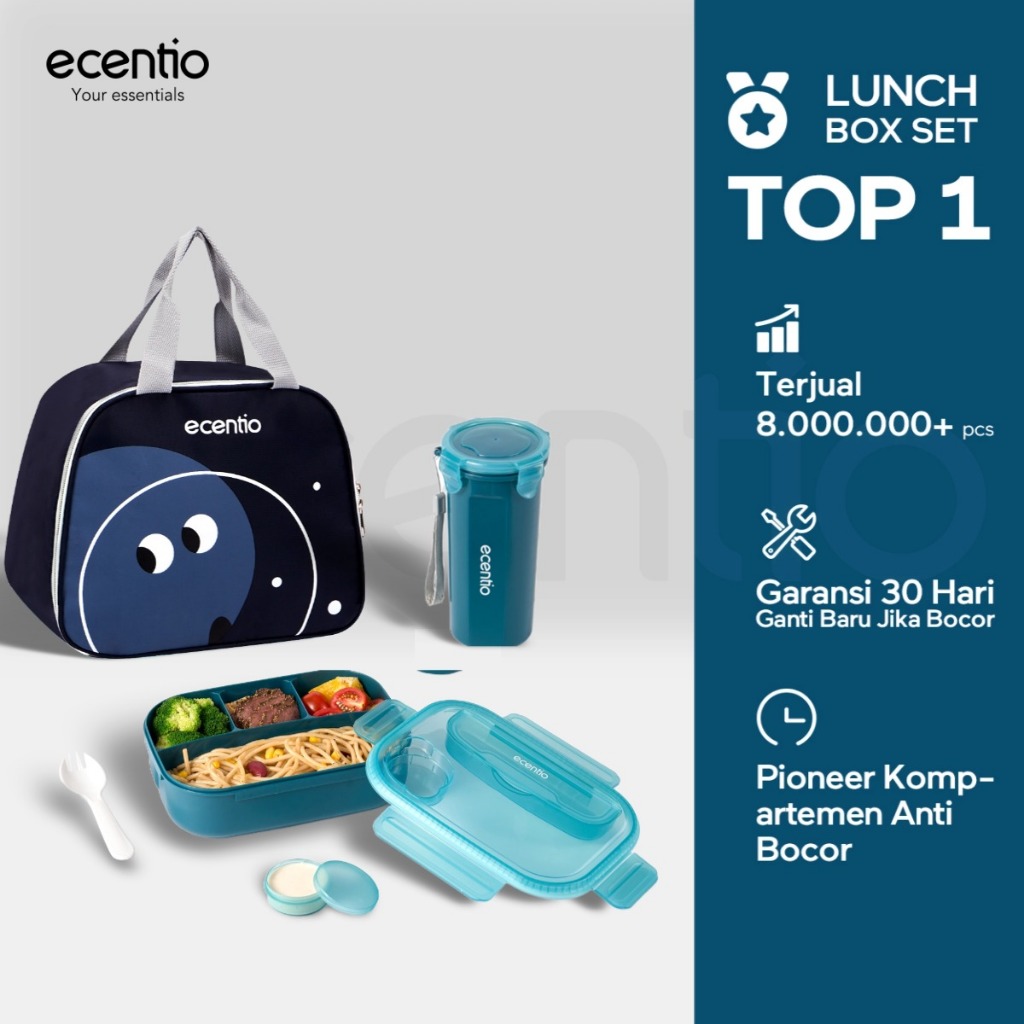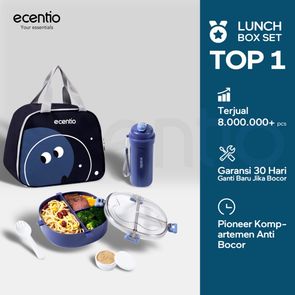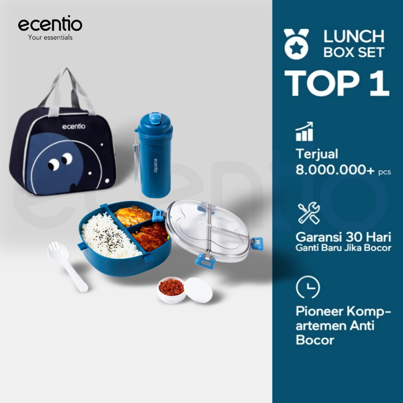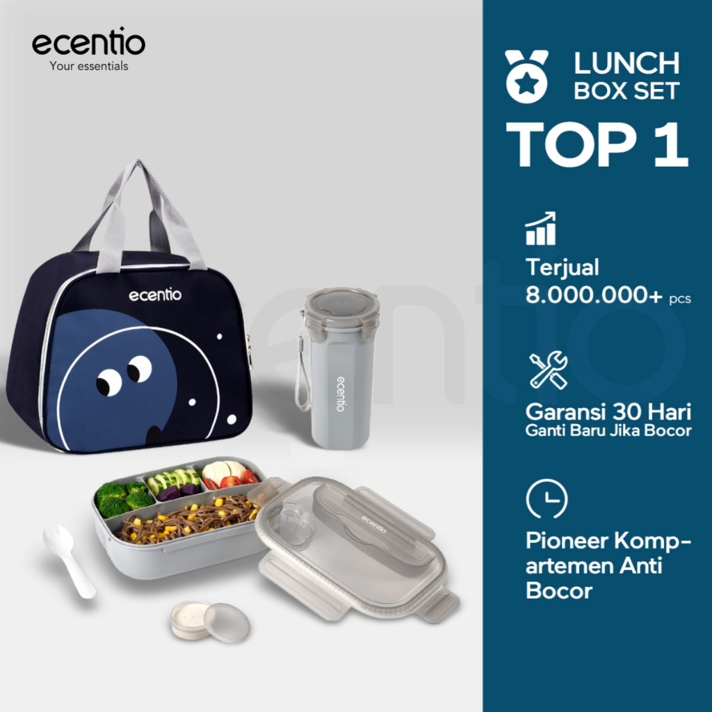 [Live Exclusive]ecentio lunch box 2.0 anti tumpah kotak bekal anti tumpah 1100ml 3 gird lunch box set free sendok kotak saus BPA FREE PP tebal berkualitas Solusi outdoor dan office