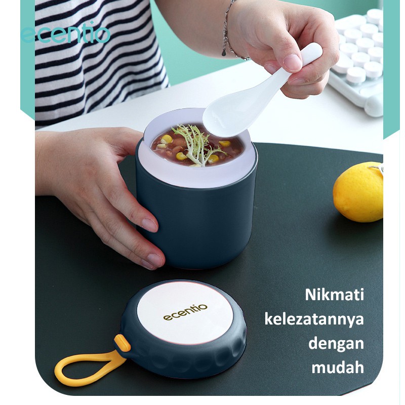 ecentio Cangkir sup 400ml Mangkok sup Portable Anti Tumpah Panci sup Free Sendok BPA FREE