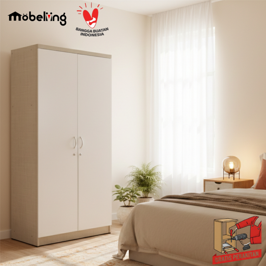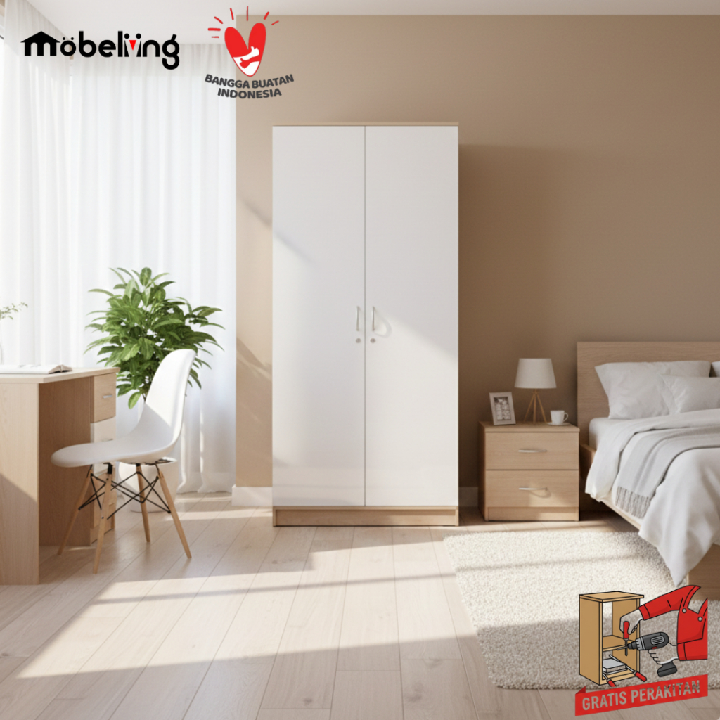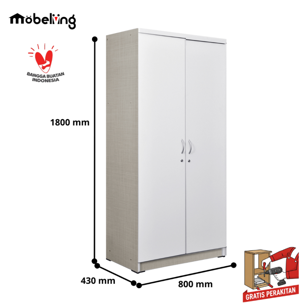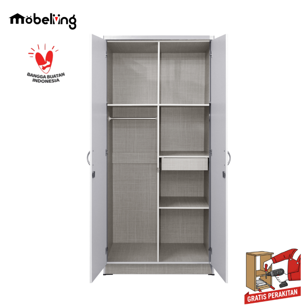 Mobeliving - Lemari 2 Pintu Putih Fabric Minimalis Dilengkapi Kunci - Lemari 2 Pintu