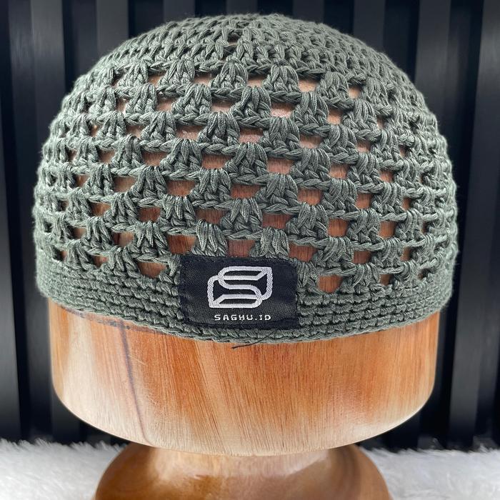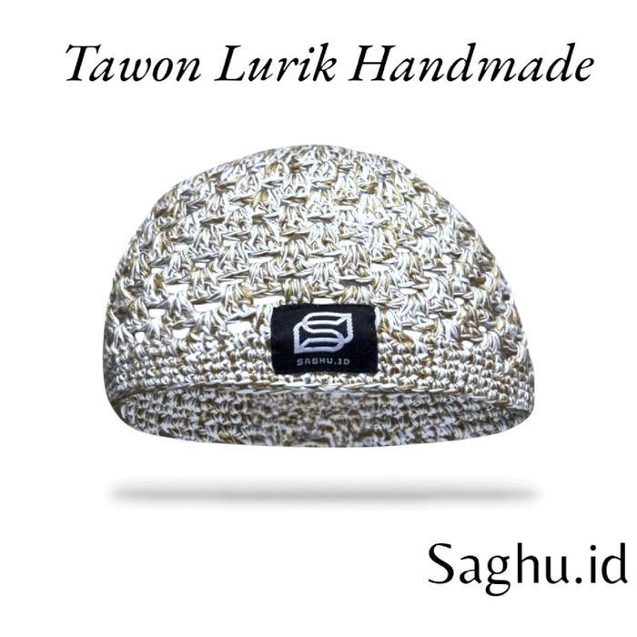 Peci Rajut Tawon Handmade Kopiah dewasa terbaru by saghu Umroh .id Terbaru songkok haji Motif Nyaman Tebal Muslim Hitam Santri Pria Kain - Putih