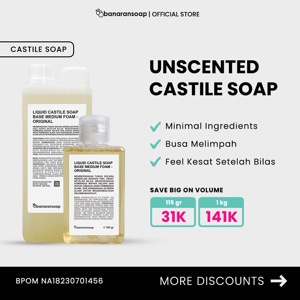 Liquid Castile Soap Base Medium Foam Unscented 100% Natural