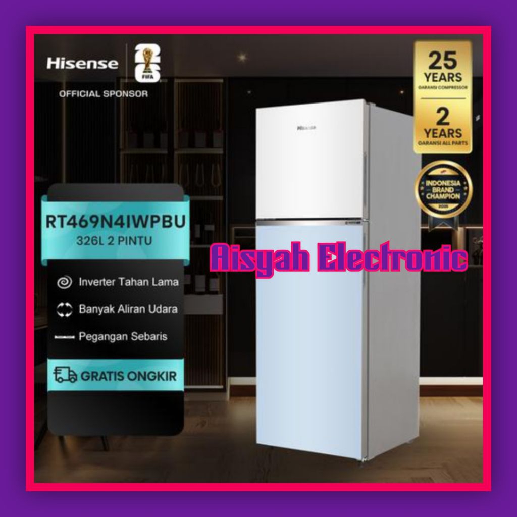 KULKAS HISENSE 2 PINTU 346 LITER RT469N4IWPBU INVERTER GARANSI 25 TAHUN