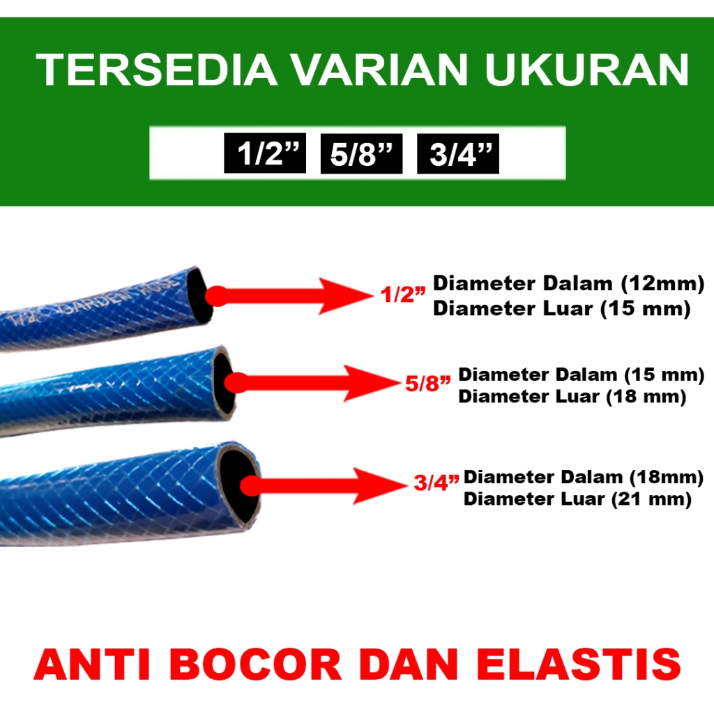 GEMUK Selang Air 1/2 5/8 3/4 Inch 50 Meter 100 Meter Selang Benang Anti Lumut Selang Cuci Motor Mobil Siram Kebun Selang Air Taman