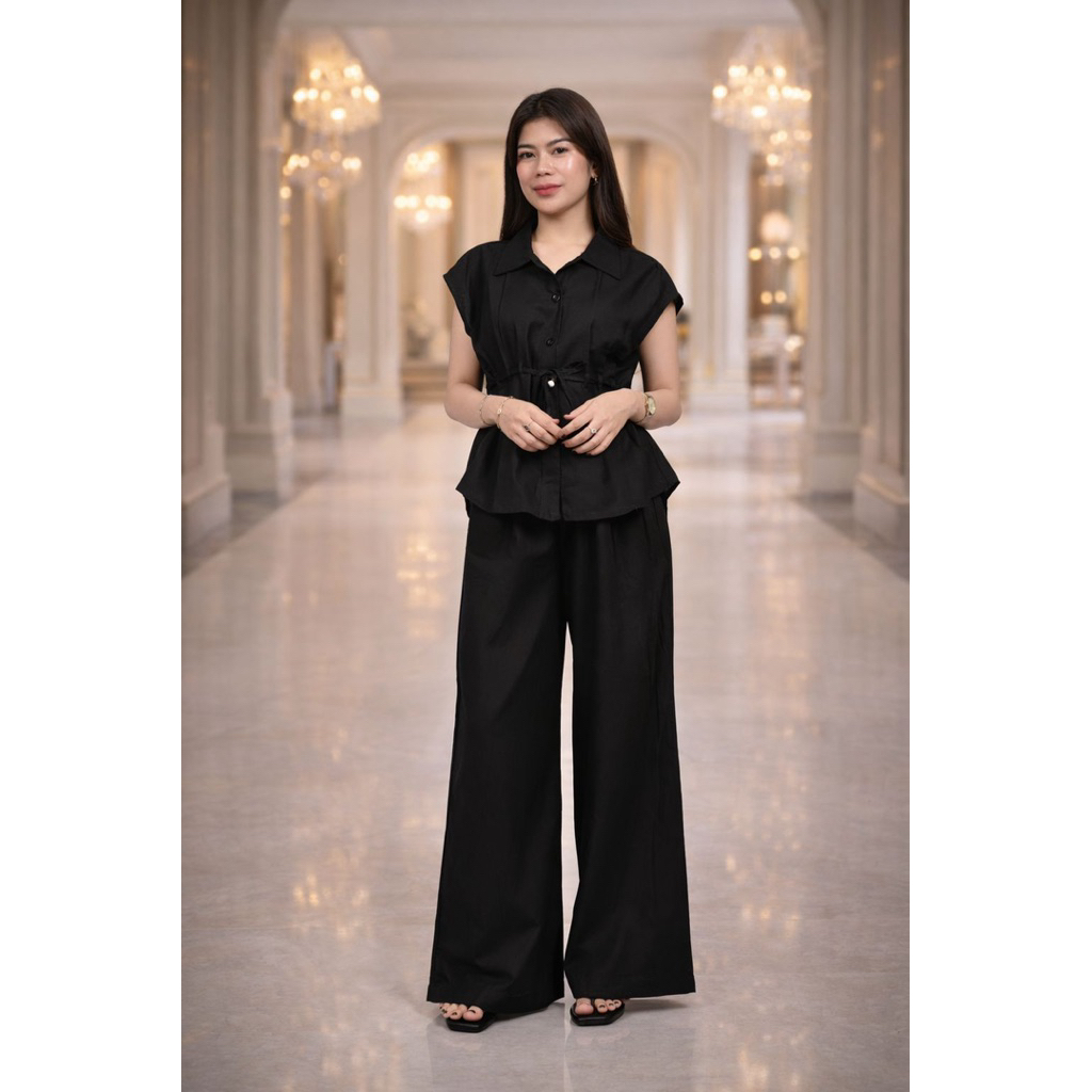 Ratiu Fashion | Vallerie One Set | Blouse Berkerah Celana Panjang Wanita Kekinian Casual