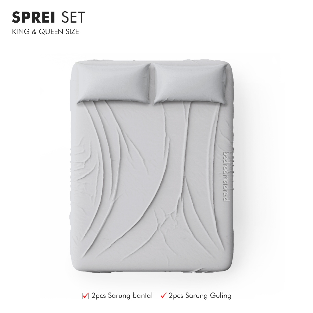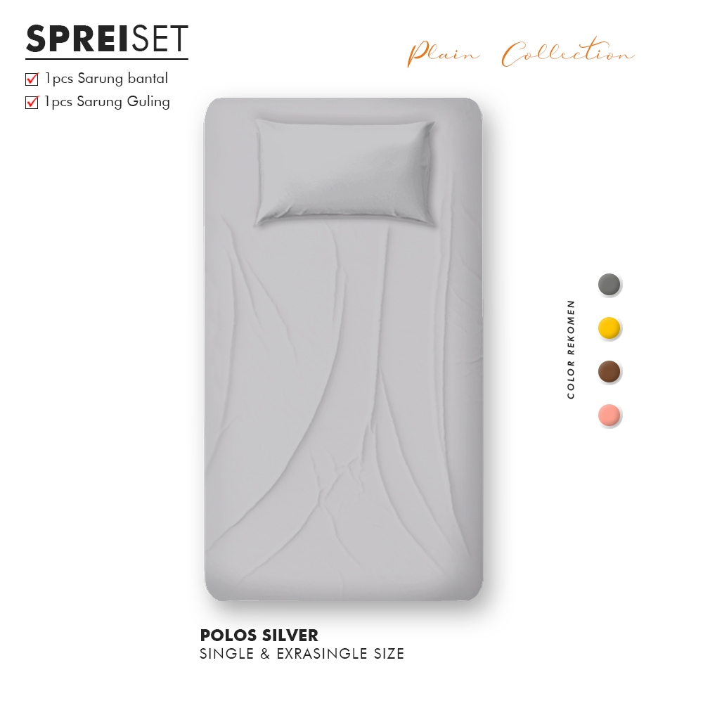 Sprei Aesthetic Polos Silver | Ala Korea Sudah Termasuk Sarung Bantal Guling
