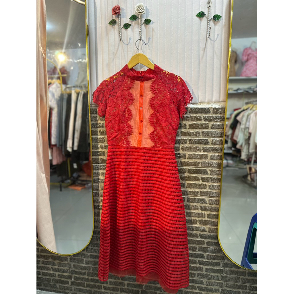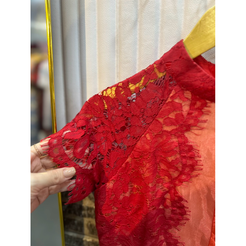 red dress cny imlek sincia brokat wanita simple terusan merah