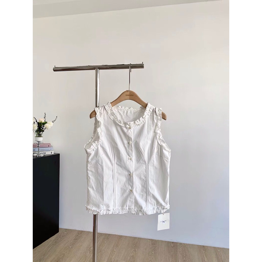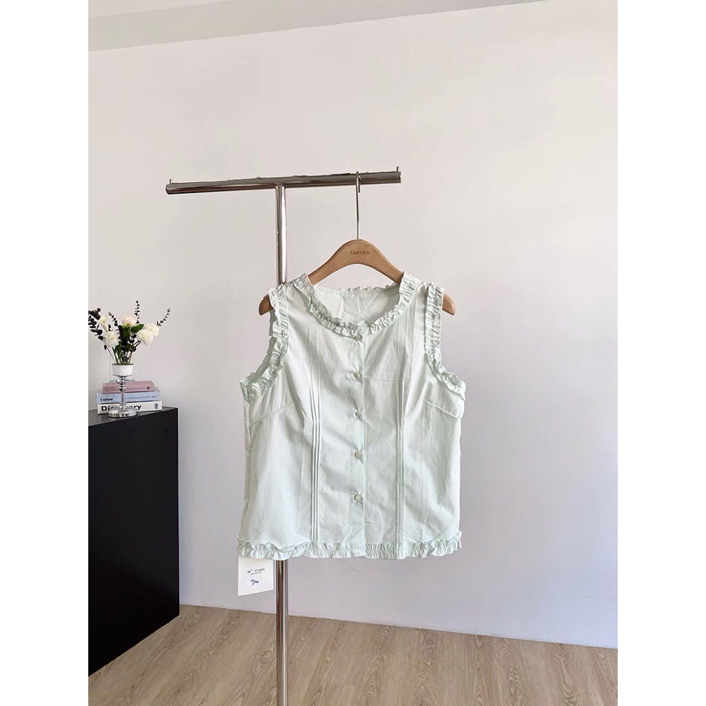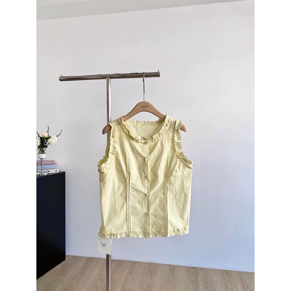 Atasan Wanita Sleeveless Ruffle Button Casual Feminine Top