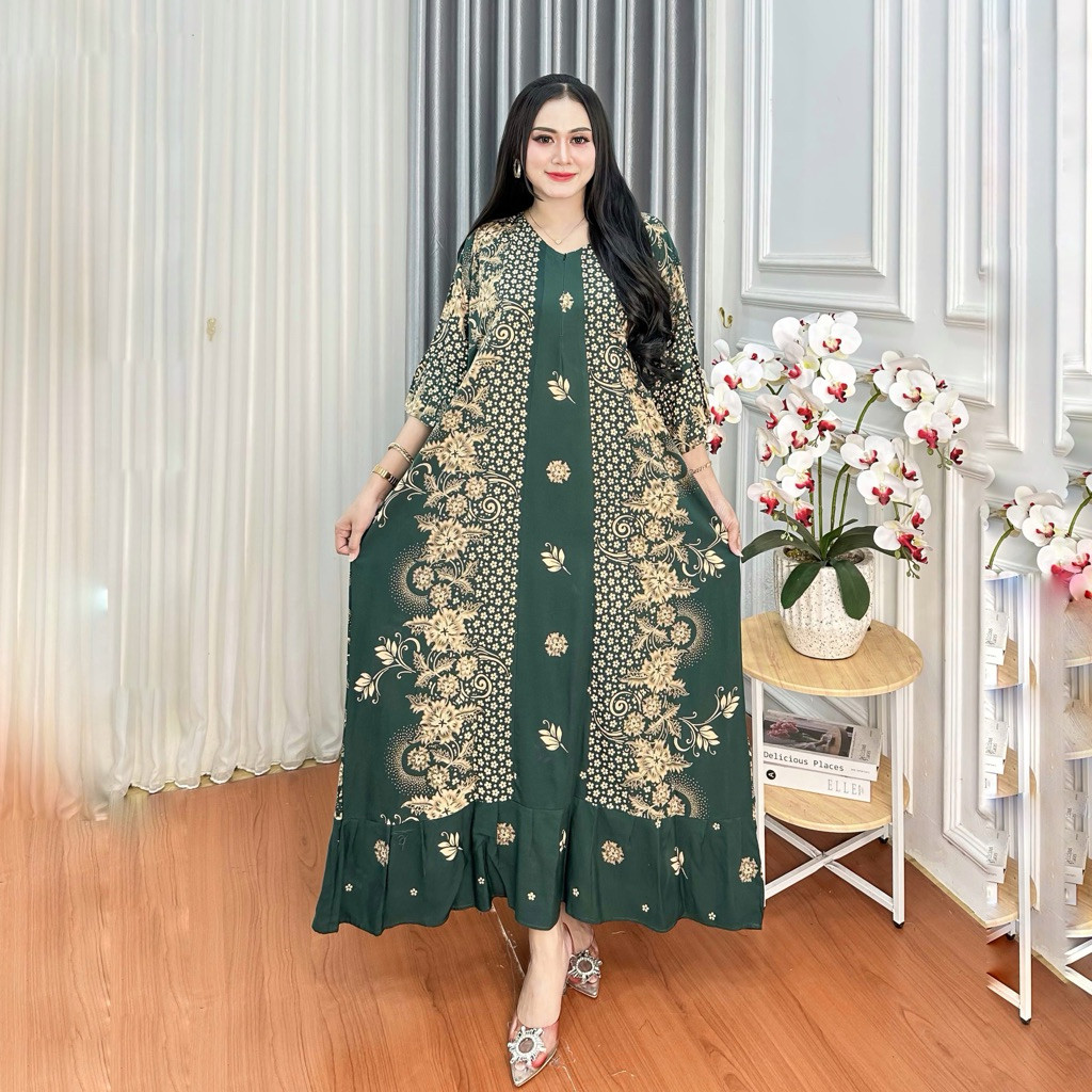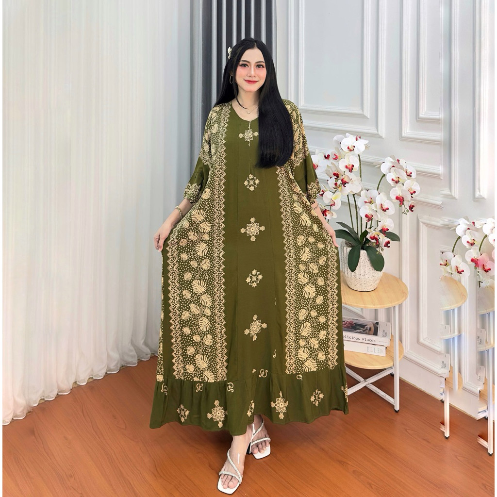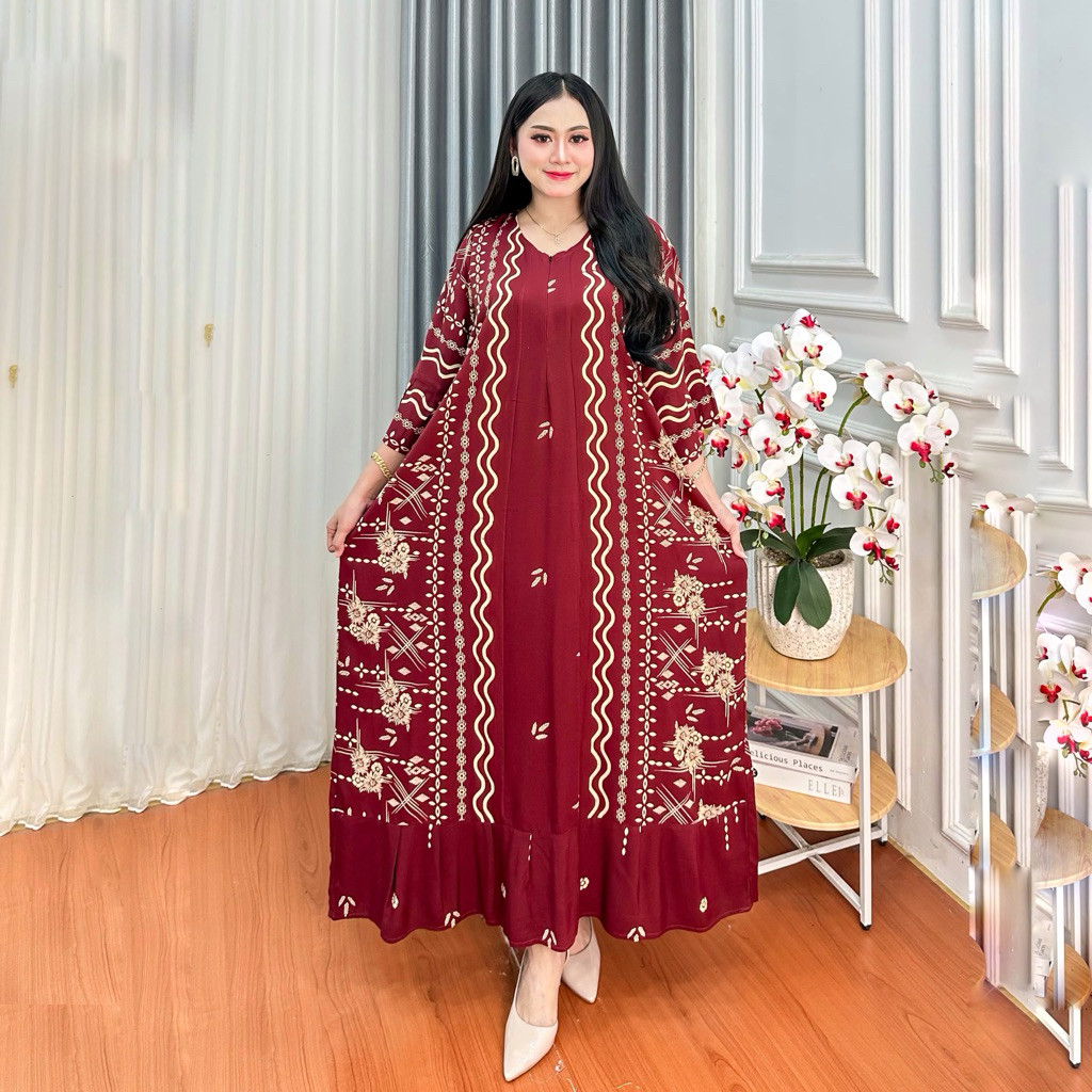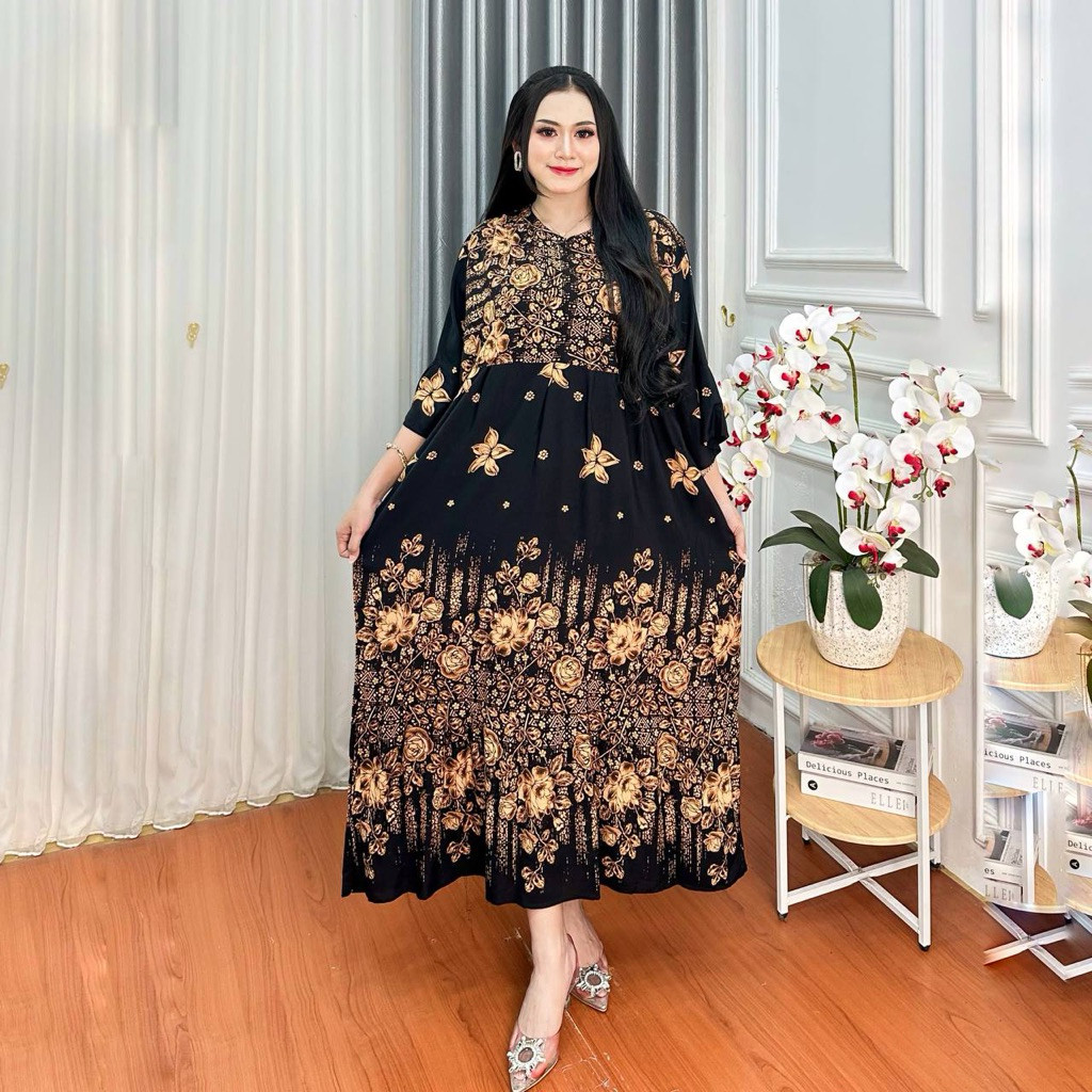 LOWESHOP CHIKA DRESS KOMBINASI LENGAN 3/4 JUMBO LD 130 VIRAL TERBARU KAIN RAYON PREMIUM MURAH KEKINIAN