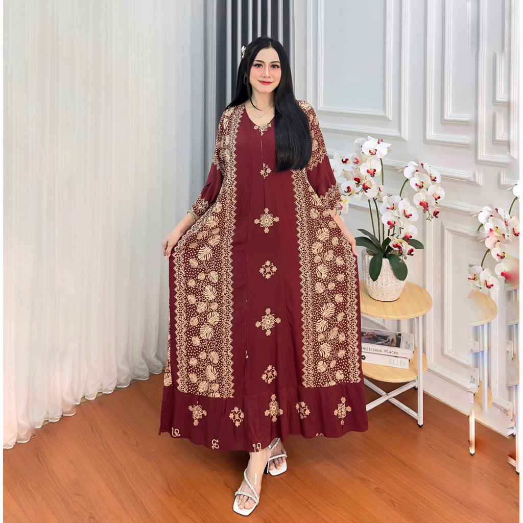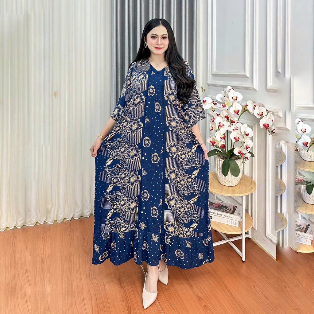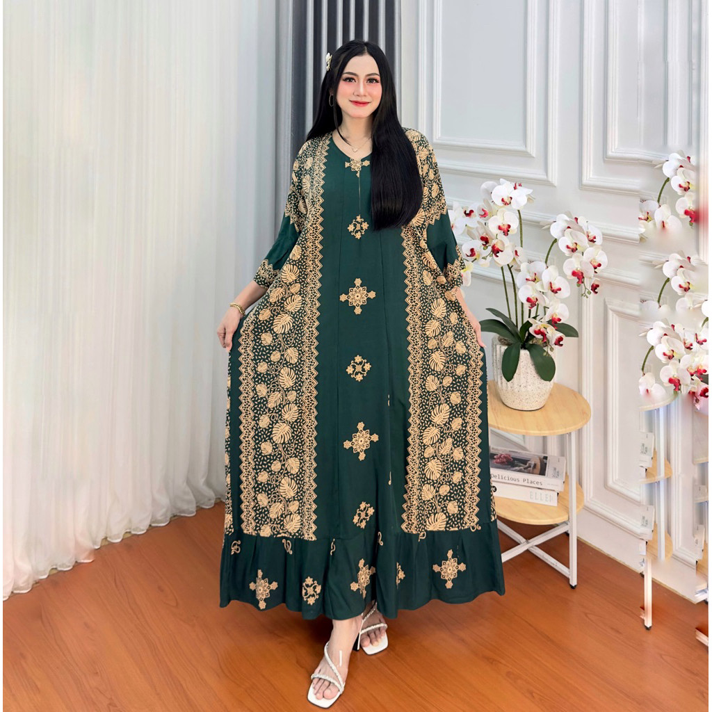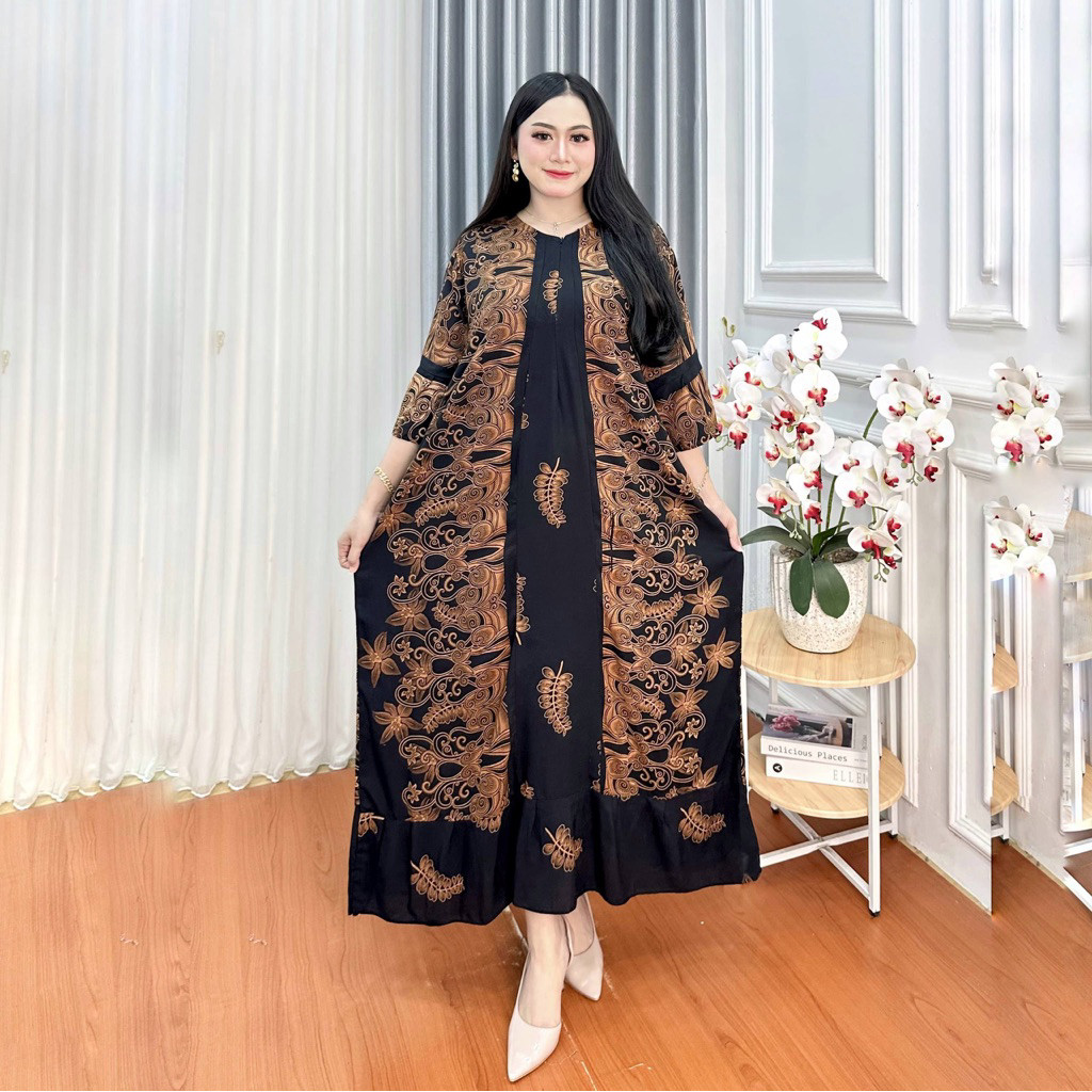 LOWESHOP CHIKA DRESS KOMBINASI LENGAN 3/4 JUMBO LD 130 VIRAL TERBARU KAIN RAYON PREMIUM MURAH KEKINIAN