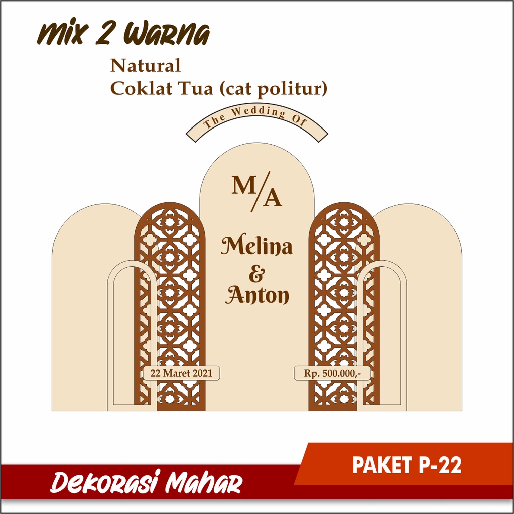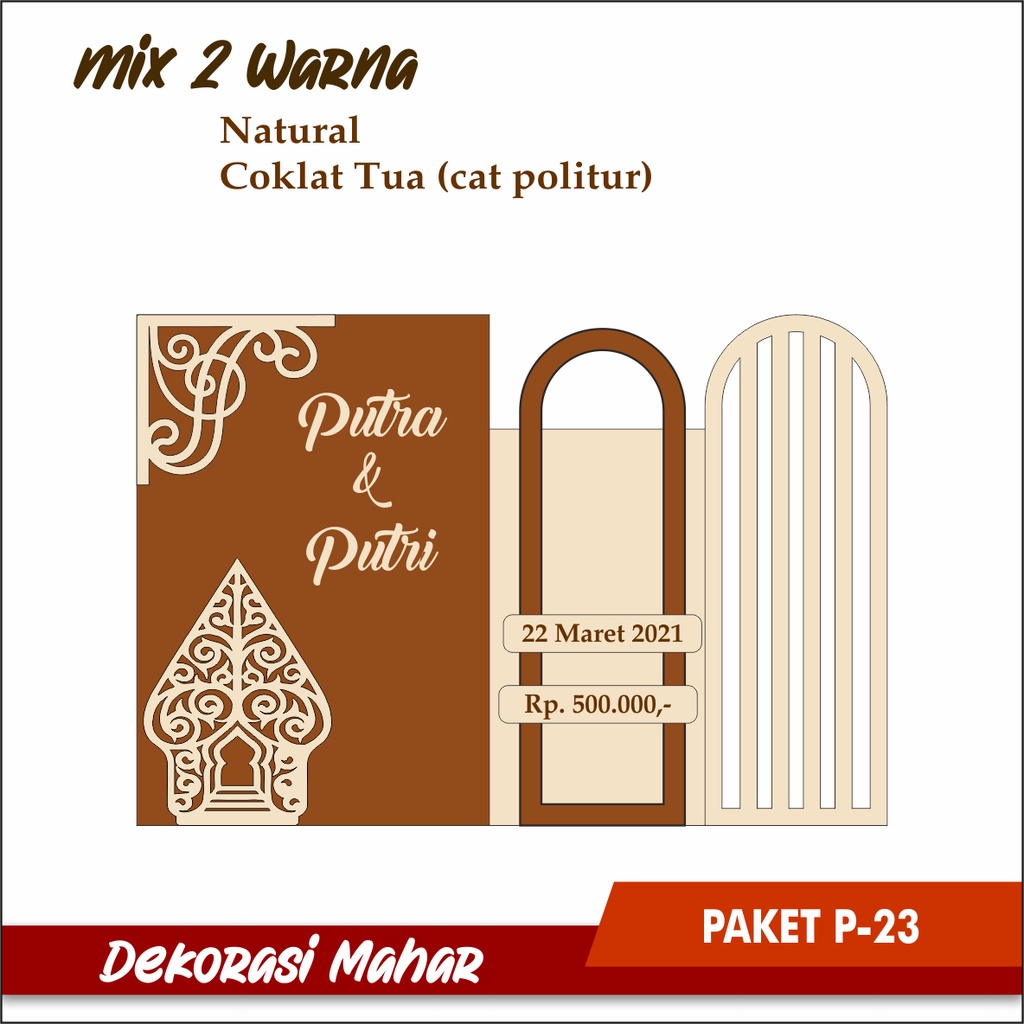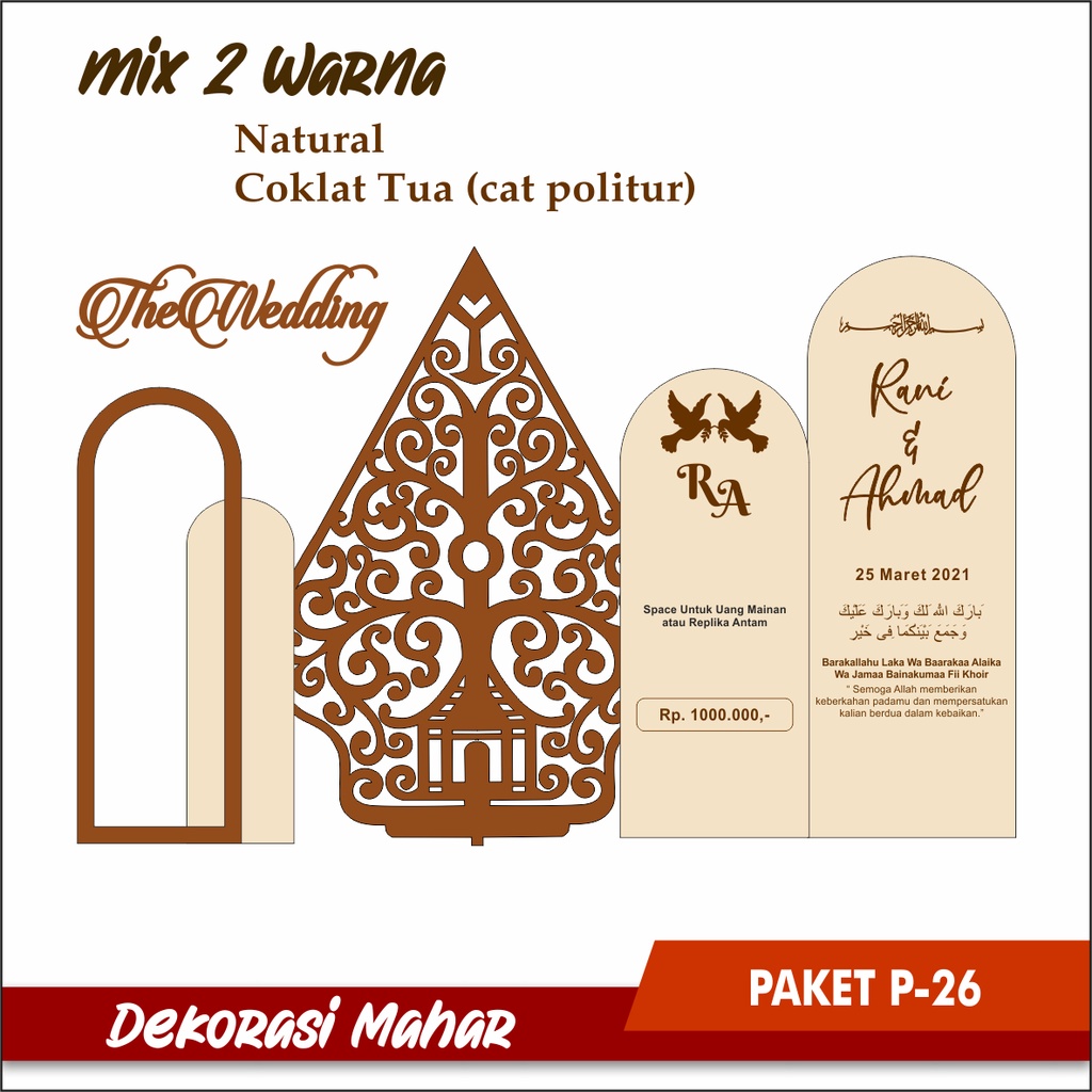 (P21-26) DEKORASI UNTUK MAHAR BAHAN PLY WOOD WARNA NATURAL POLITUR