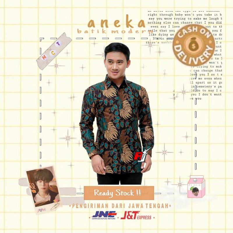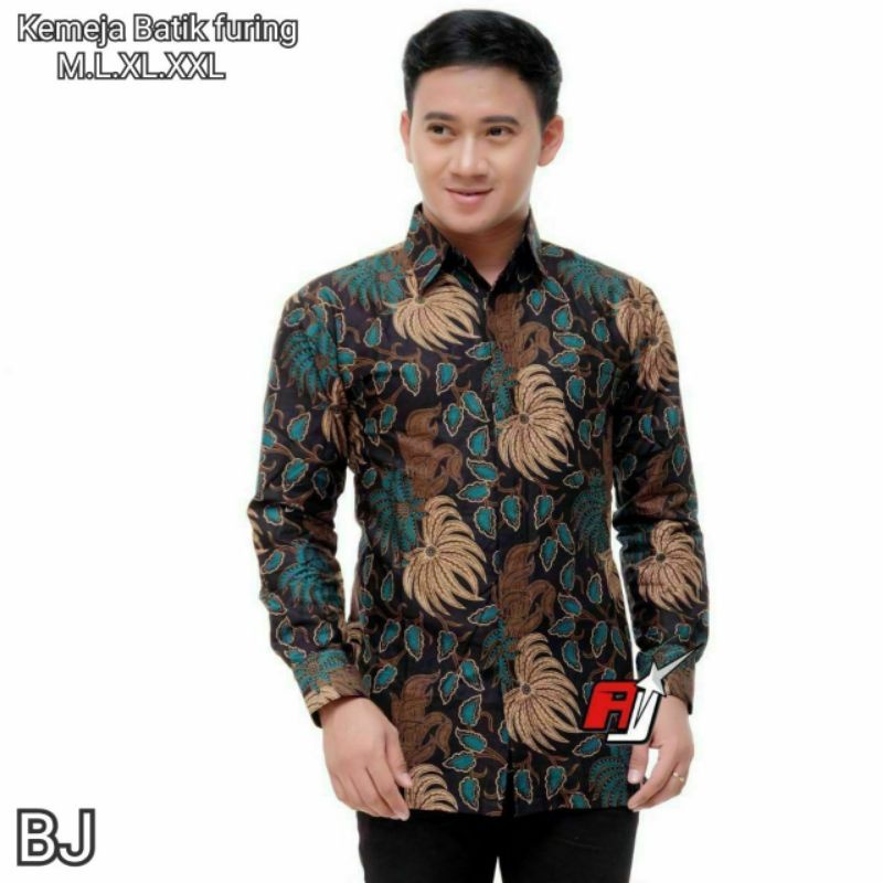 KEMEJA BATIK PRIA LENGAN PANJANG BERFURING WARNA HIJAU TOSCA TUA CREM MOCCA COKLAT XXL KERJA KANTOR