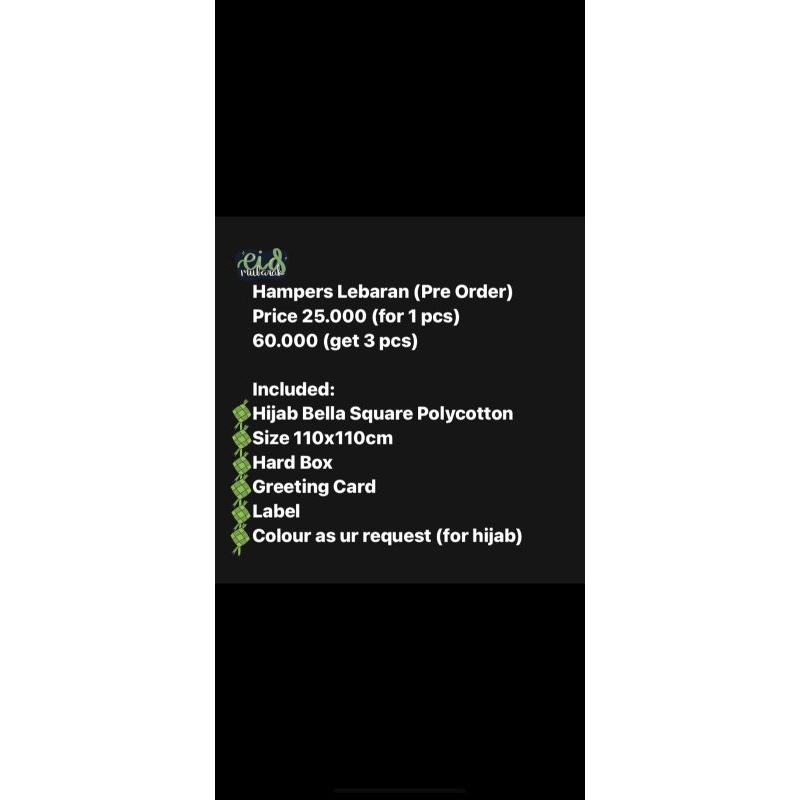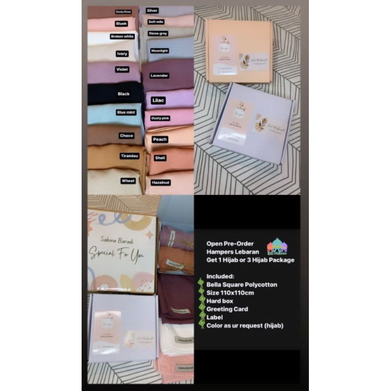 Hampers Hijab Jilbab isi 3 pcs Bella Square Polycotton Size 110x110cm