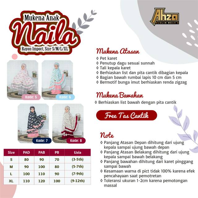 MUKENA ANAK NAILA by Ahza/mukena lebaran anak/mukena murah/mukena anak terbaru