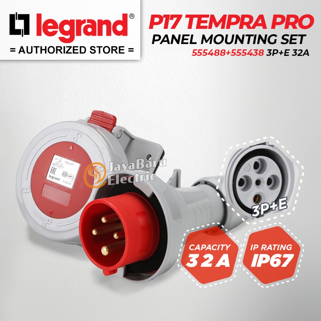Legrand Paket 1 Set Plug Panel Mounting Socket 3P+E 4 Pin 4Pin 32A IP67 P17 Tempra Pro 555488 555438