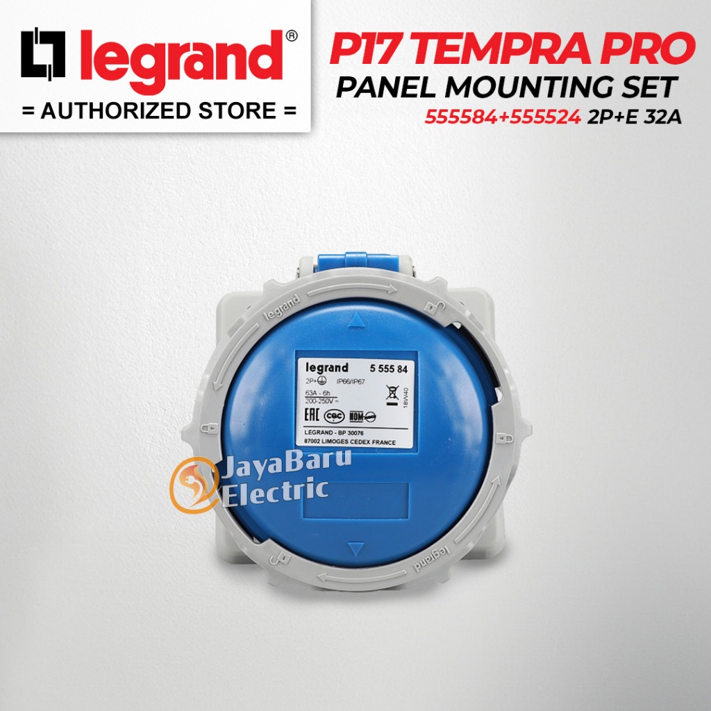 Legrand Paket 1 Set Plug Panel Mounting Socket 2P+E 3 Pin 3Pin 63A IP67 P17 Tempra Pro 555584 555524