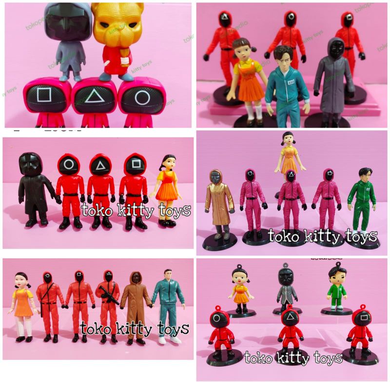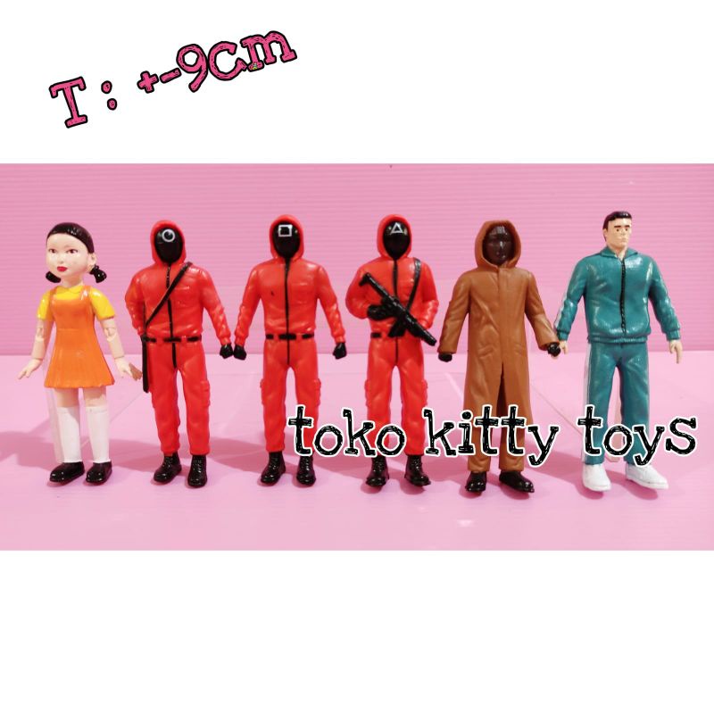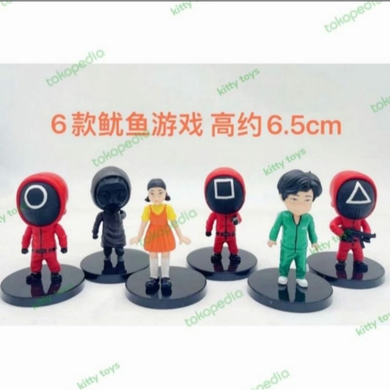 figure squid game set isi 6 mainan hiasan topper cake squidgame