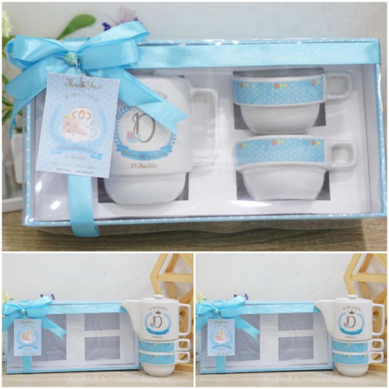 Souvenir One Month Hamper / Souvenir Teapot / Teko Susun 2 Cangkir (mika hard box)