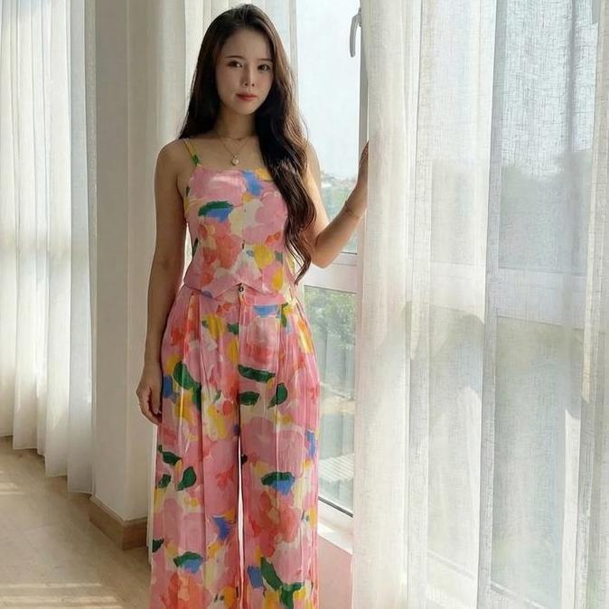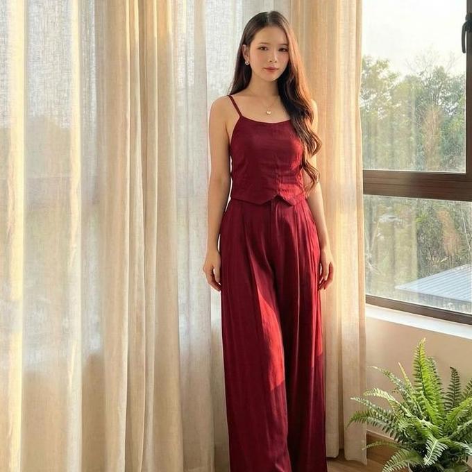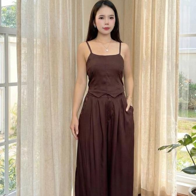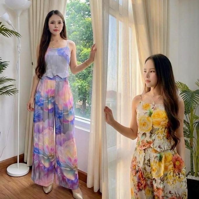 Oneset livy setelan semi crop Kancing Celana Rayon Atasan Panjang Nyaman