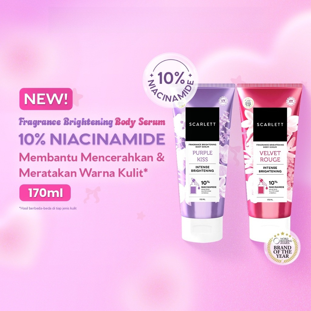 2IN1 Scarlett Fragrance Brightening Body Serum 170ml & Scarlett Whitening Extrait De Parfum 30ml ( Velvet Rouge / Purple Kiss ) | Melembapkan mencerahkan meratakan warna kulit, Kulit cerah wangi mewah