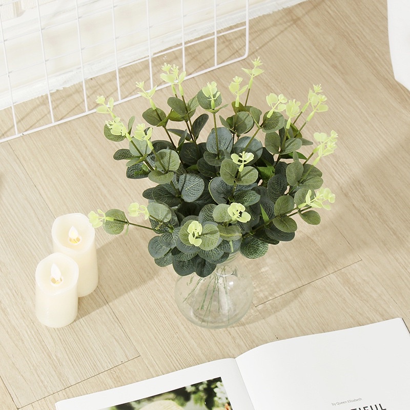 ARTIFICIAL FLOCKING EUCALYPTUS DAUN ARTIFISIAL DAUN PLASTIK PALSU DAUN DEKORASI BUKET BUNGA ARTIFISIAL