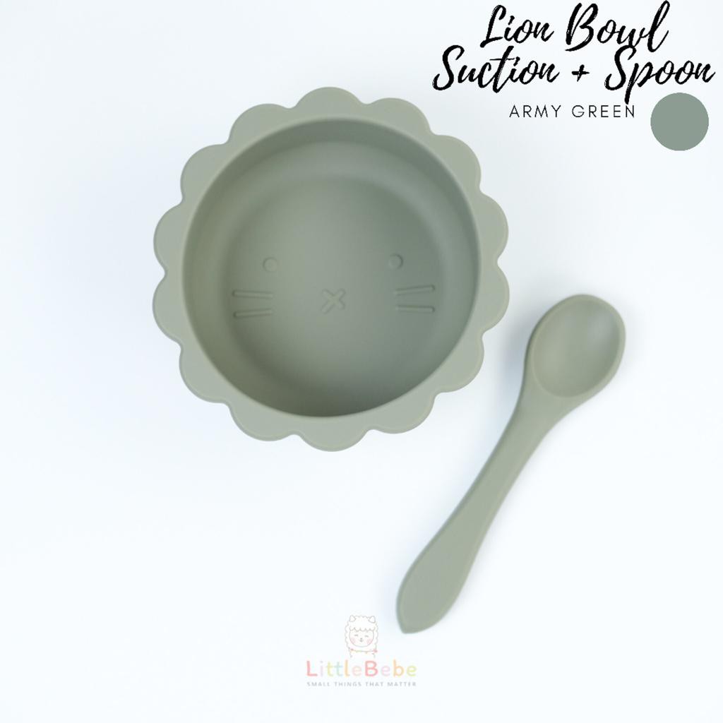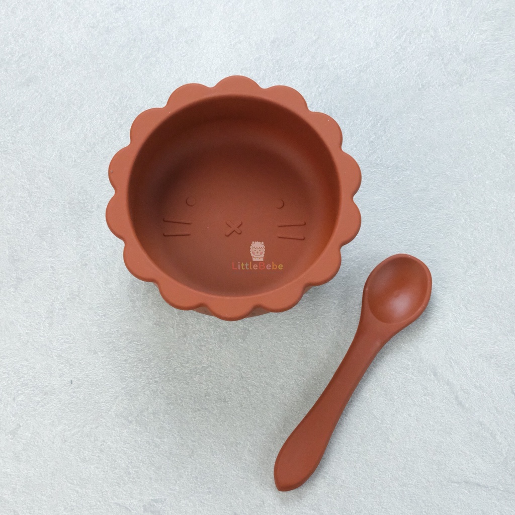 Littlebebeshop Bowl Silicone Suction Lion with Spoon 300ml Anti Tumpah