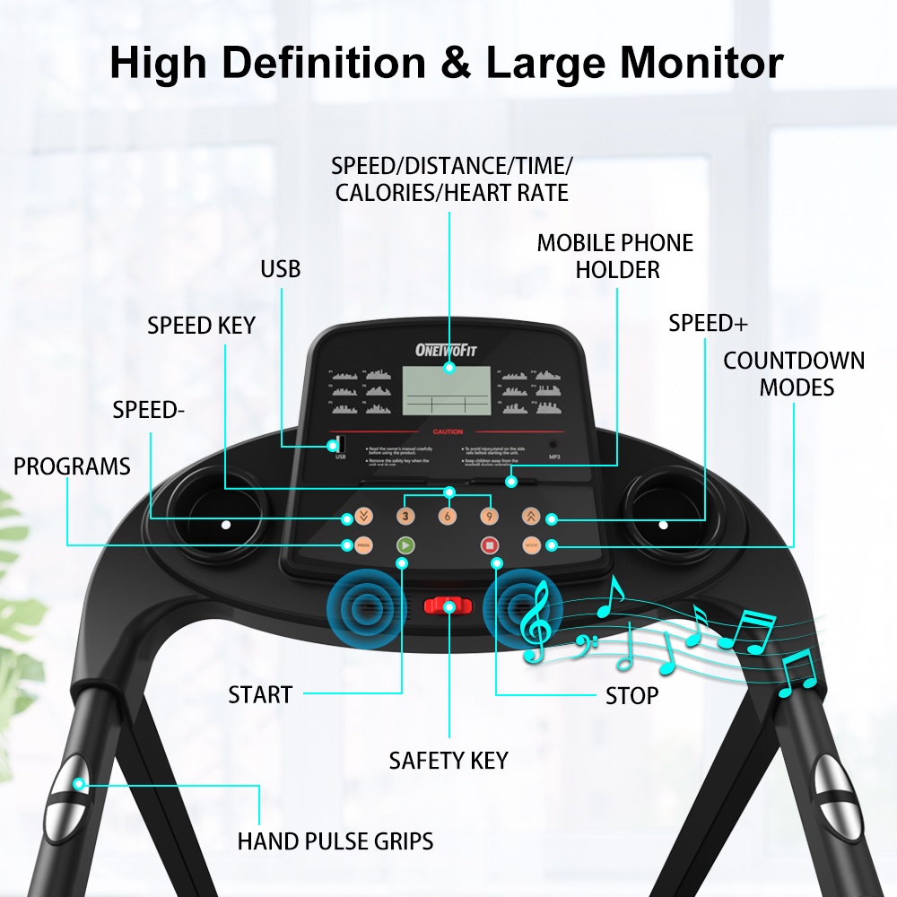 OneTwoFit Alat Fitness Smart Treadmill Elektrik Lipat dengan Motor 2.5HP dan Bluetooth Speaker Garansi 1 Tahun Kapasitas 110kg Portable Soft Drop System 3 Manual Incline