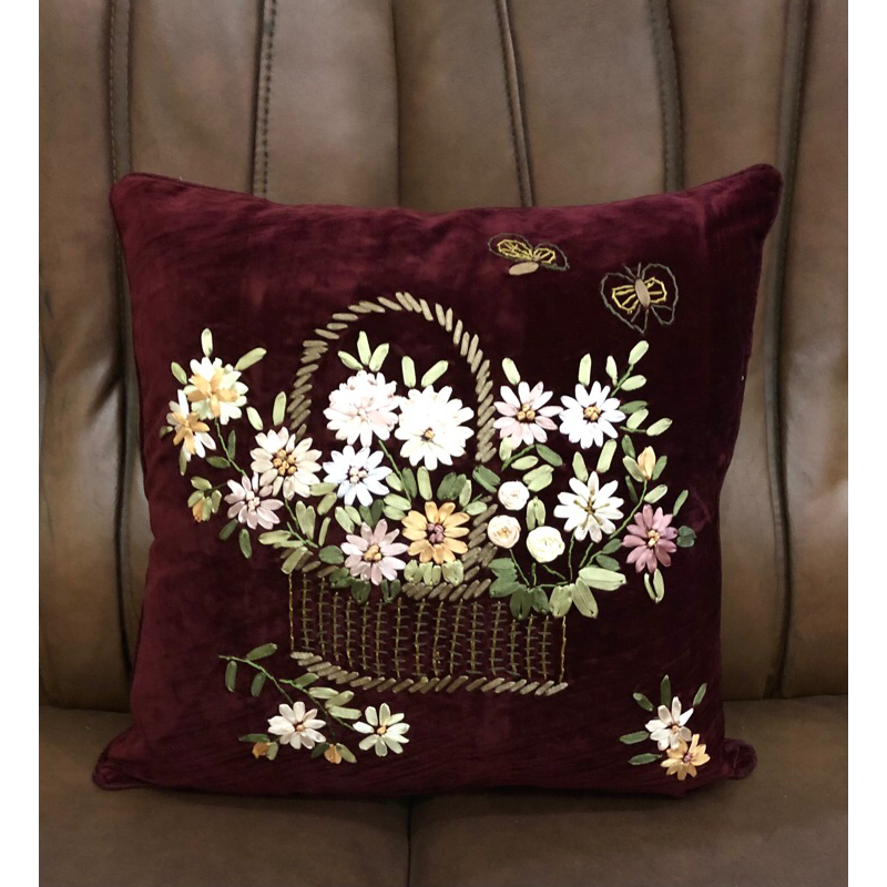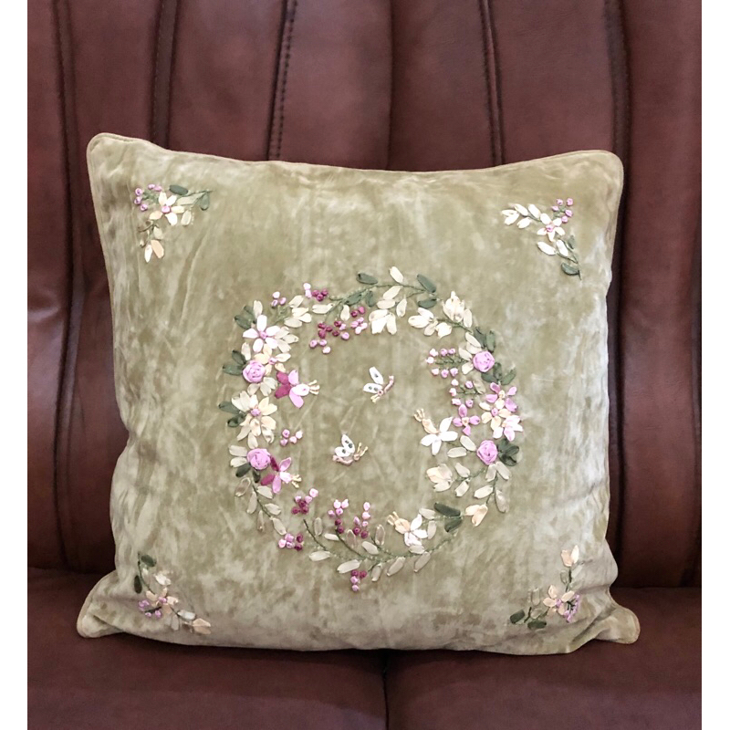 Sarung bantal sofa /kursi 45x45 sulam pita shabby