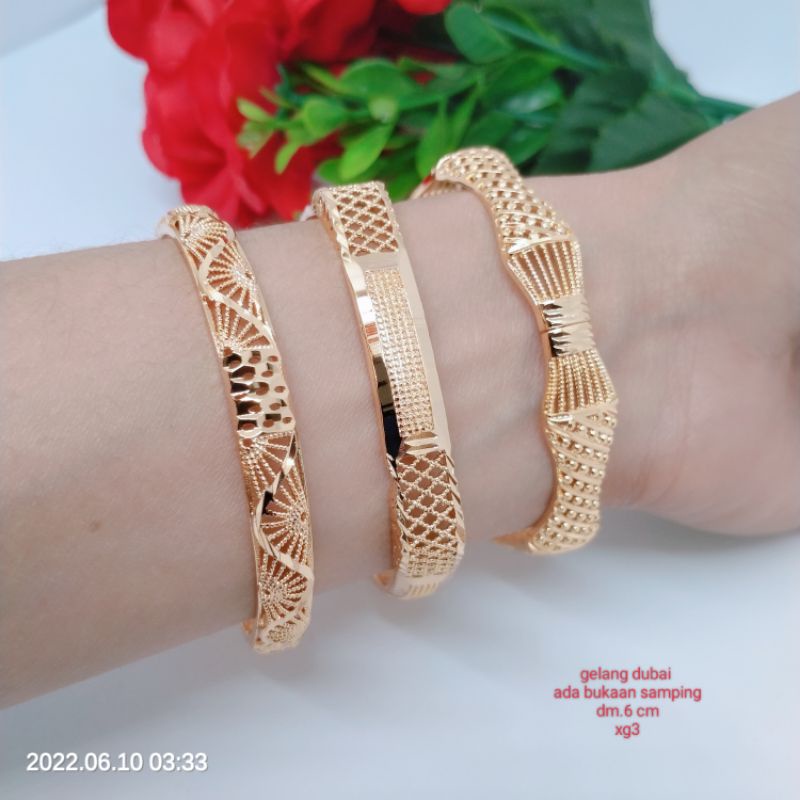 Gelang Bangkok Dubai bangle Titanium Xuping Rodium perhiasan lapis emas 24 karat R3-GD3