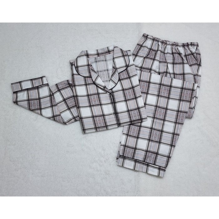 Baju Tidur Cewek Lengan Panjang Motif Kotak Piyama Wanita Kekinian Pajamas Dewasa