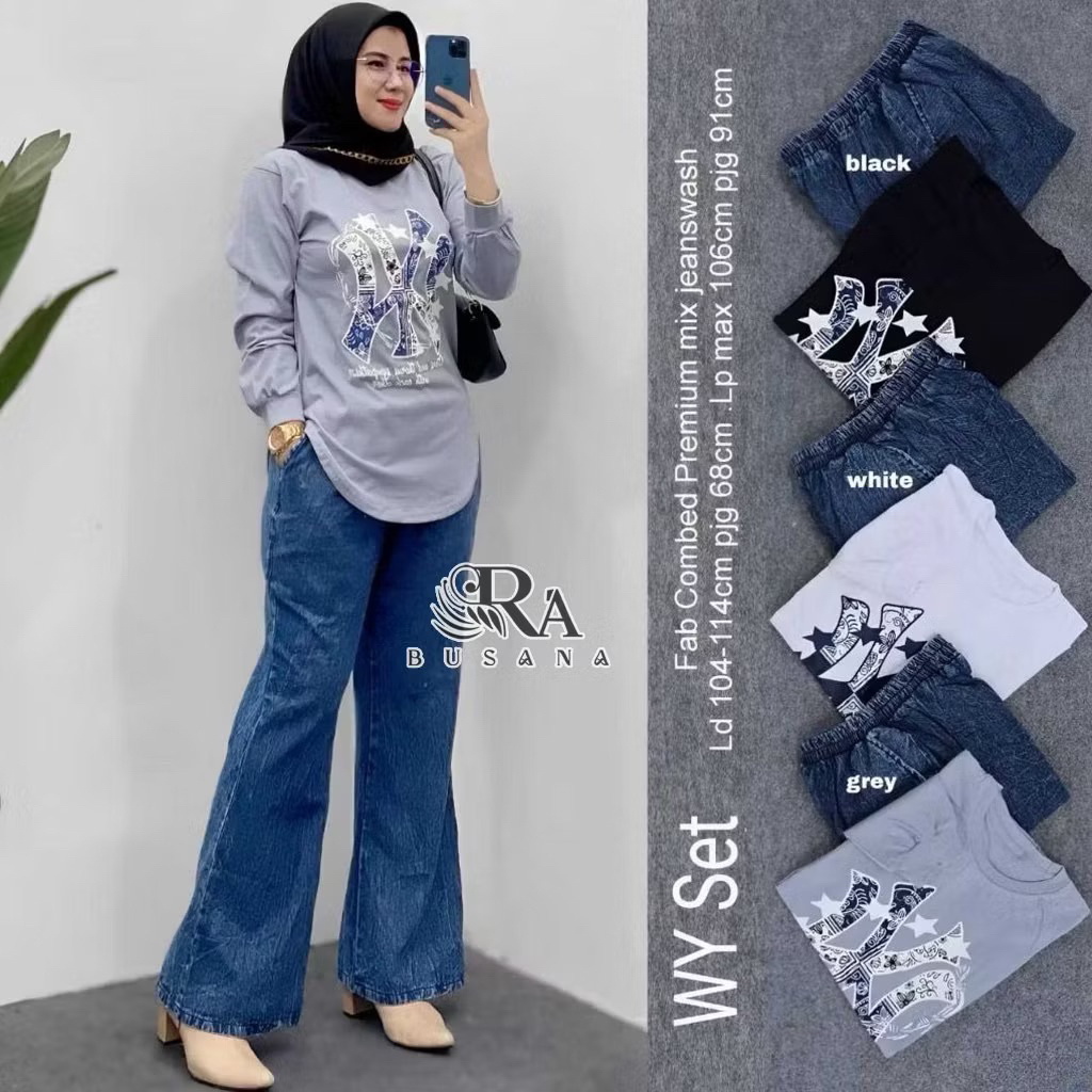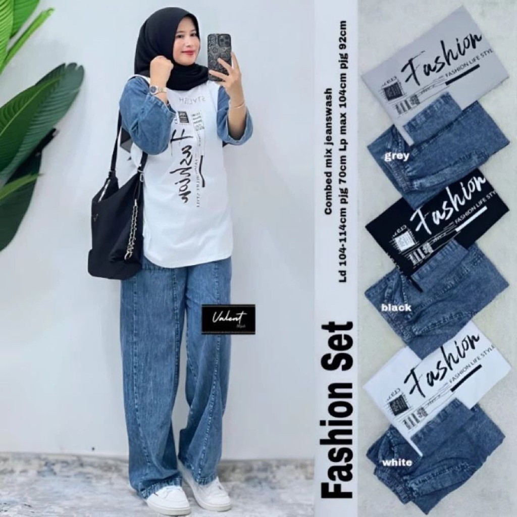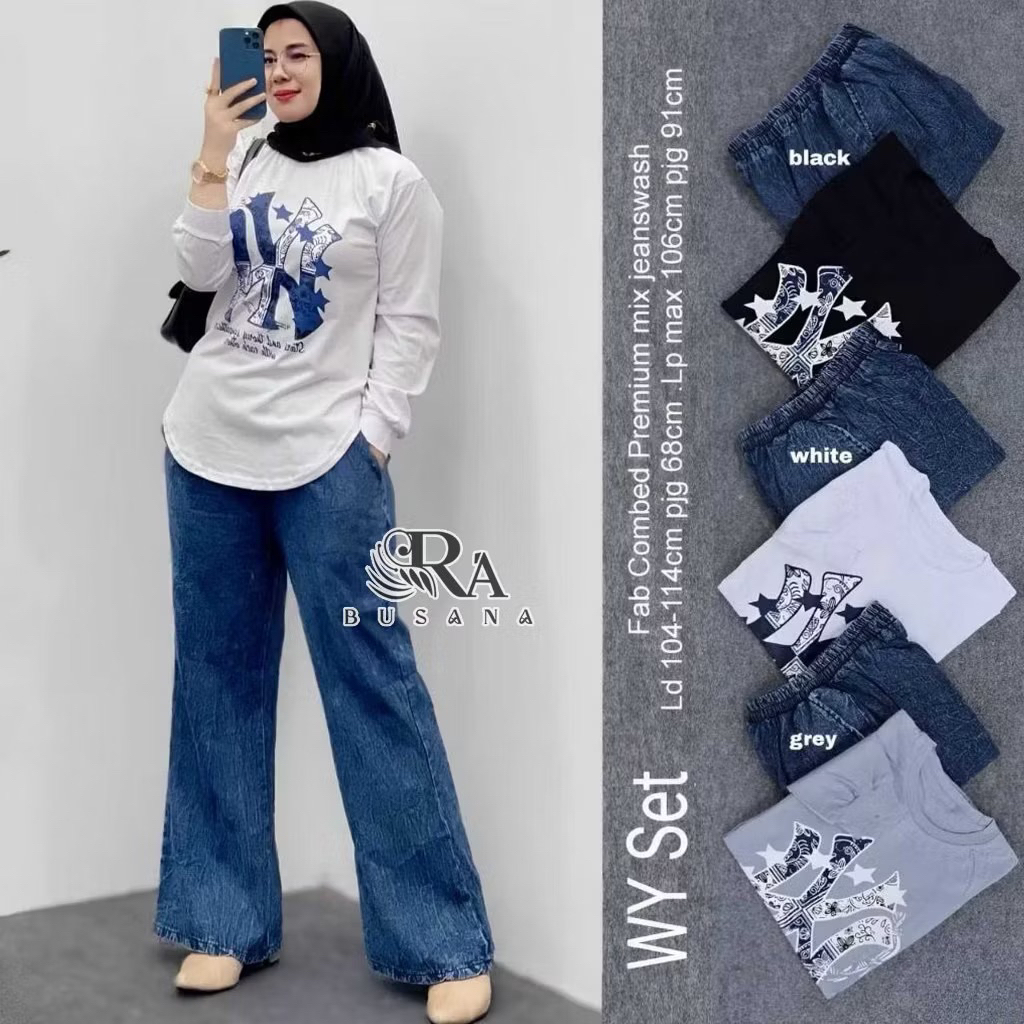 ONE SET JEANS MIX COMBED 20s | FASHION SET | SETELAN JEANS JUMBO