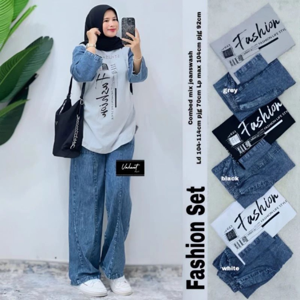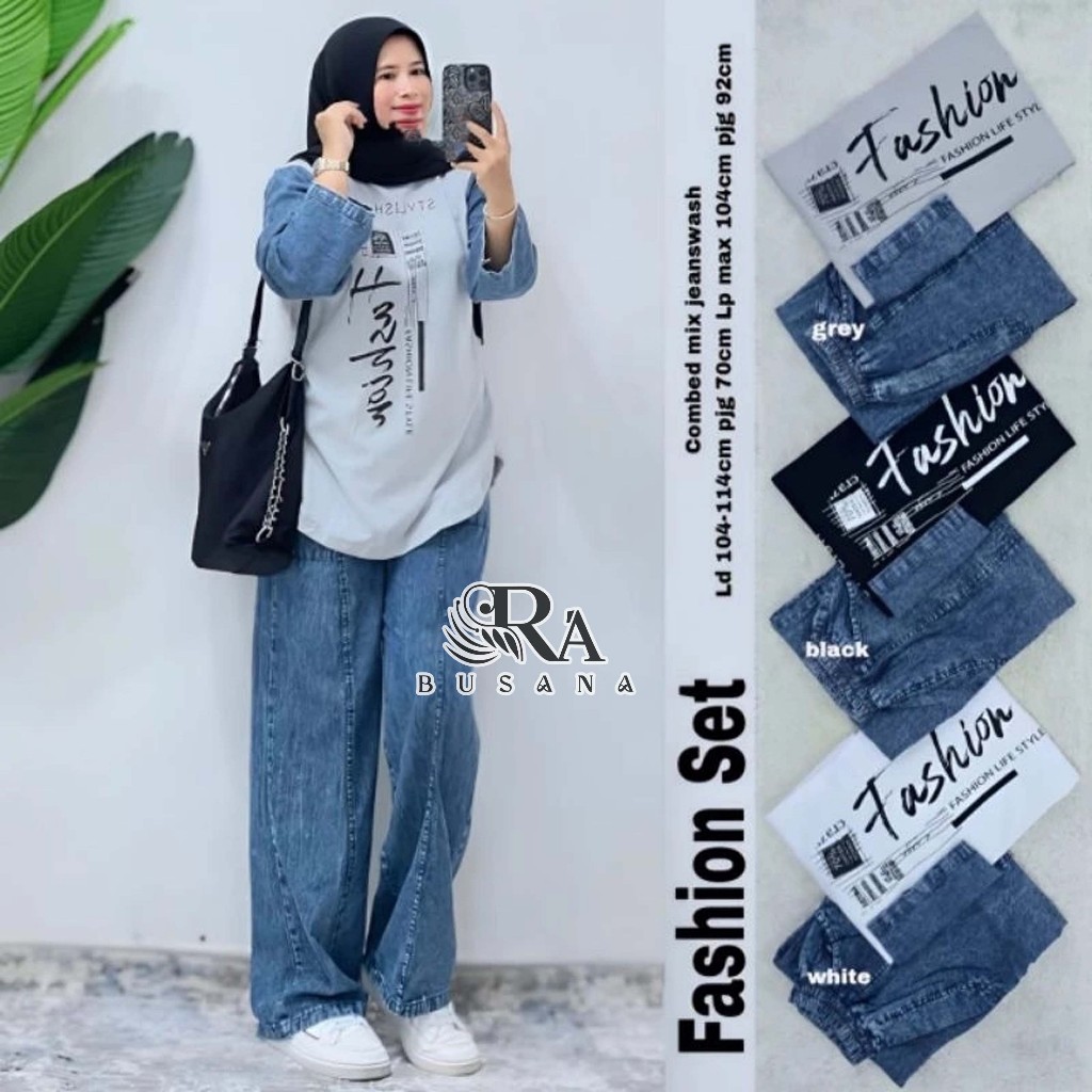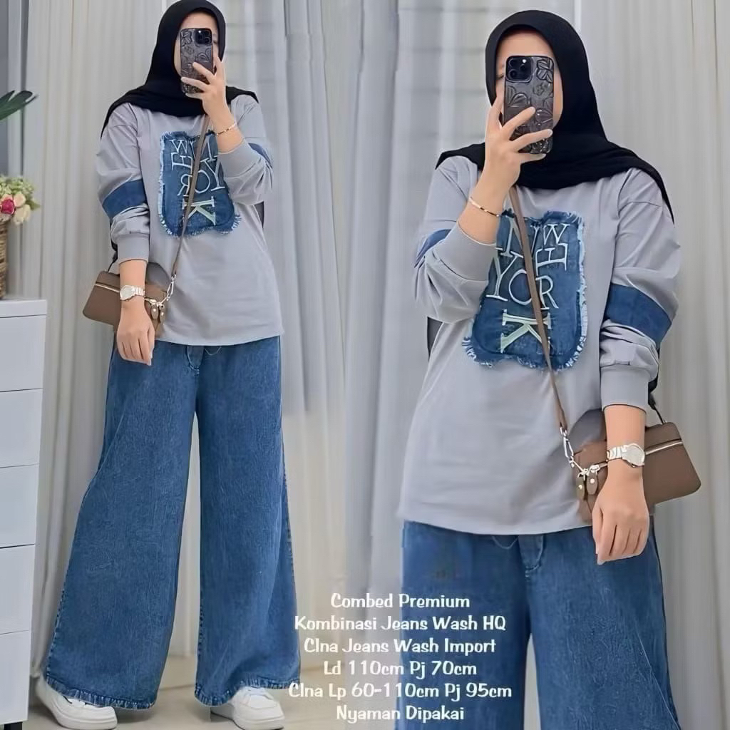 ONE SET JEANS MIX COMBED 20s | FASHION SET | SETELAN JEANS JUMBO
