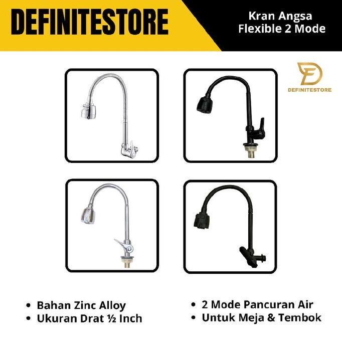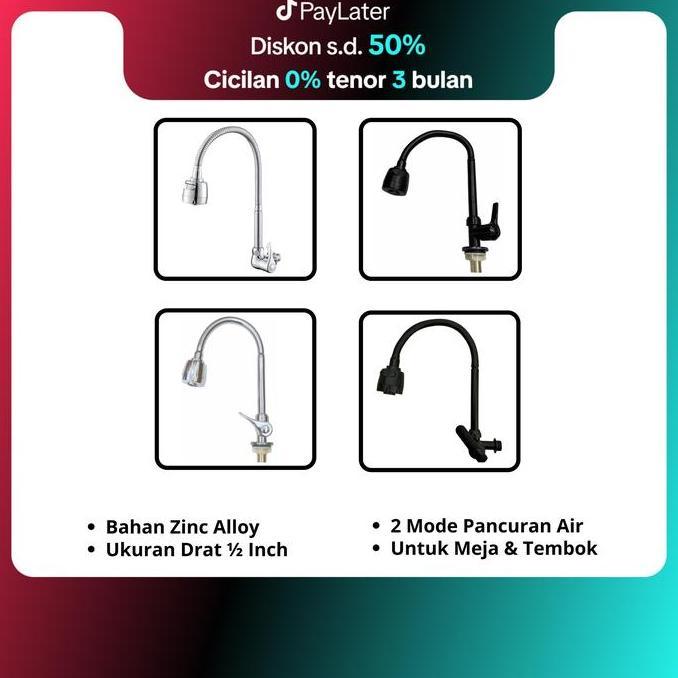 Newkirim- Df Kran Cuci Piring Kran Dapur Kran Sink Flexible Kran Angsa Keran Cuci Piring Keran Dapur Hitam Air Flexsibel Kran 1/2 Inch Drat Tembok Wastafel Shower Fleksibel Minimalis