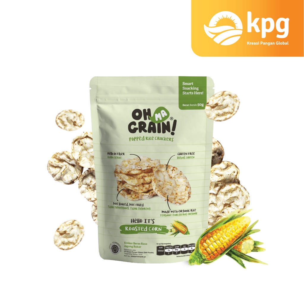 Oh Ma Grain! - Popped Rice Crackers Roasted Corn - Rasa Jagung Bakar - 50gr