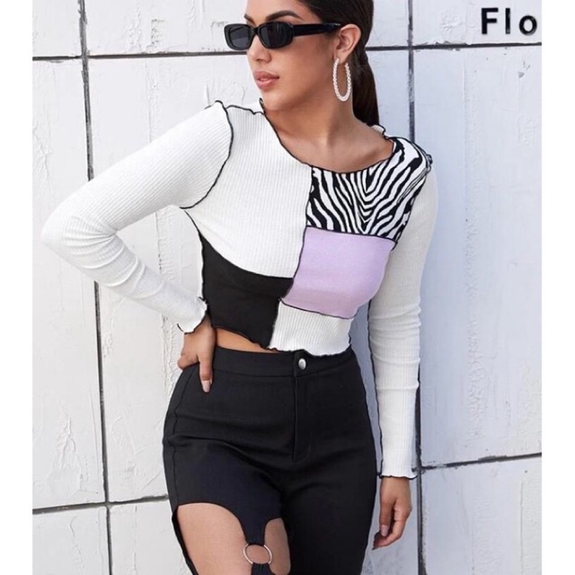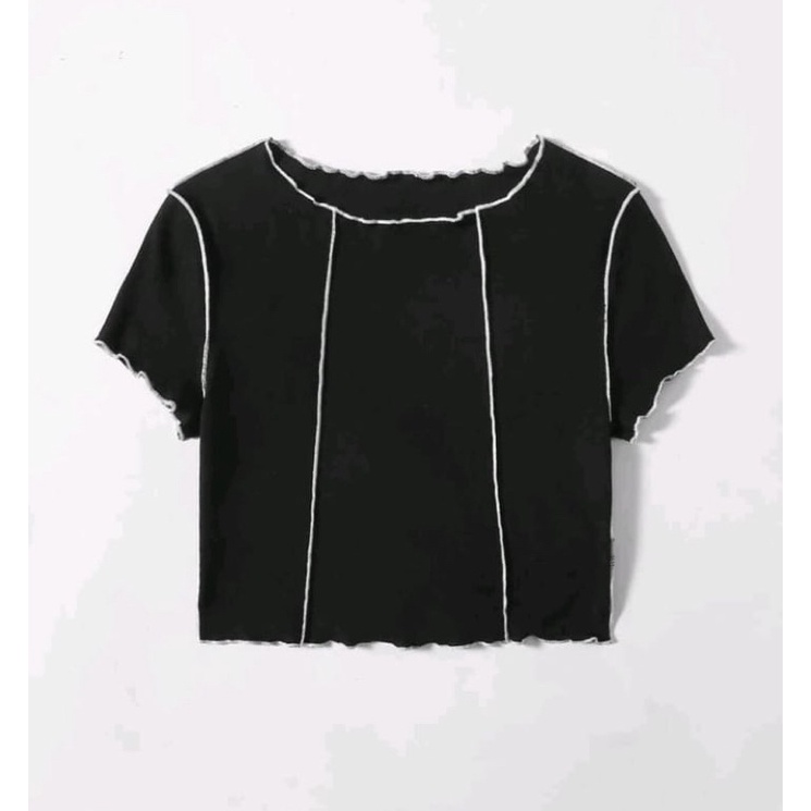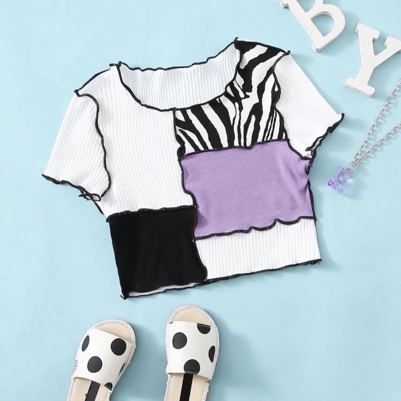 crop top two tone pattern colorblock tshirt crop tops kaos model korea murah kekinian