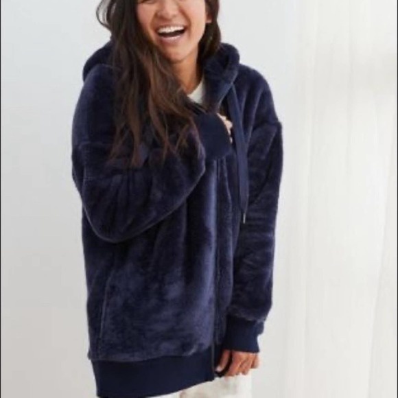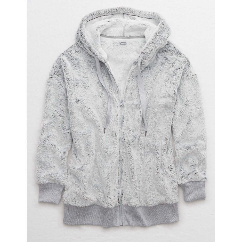 Aerie Fuzzy Sherpa Oversized Hoodie SWEATER khusus wanita // sisa ekspor