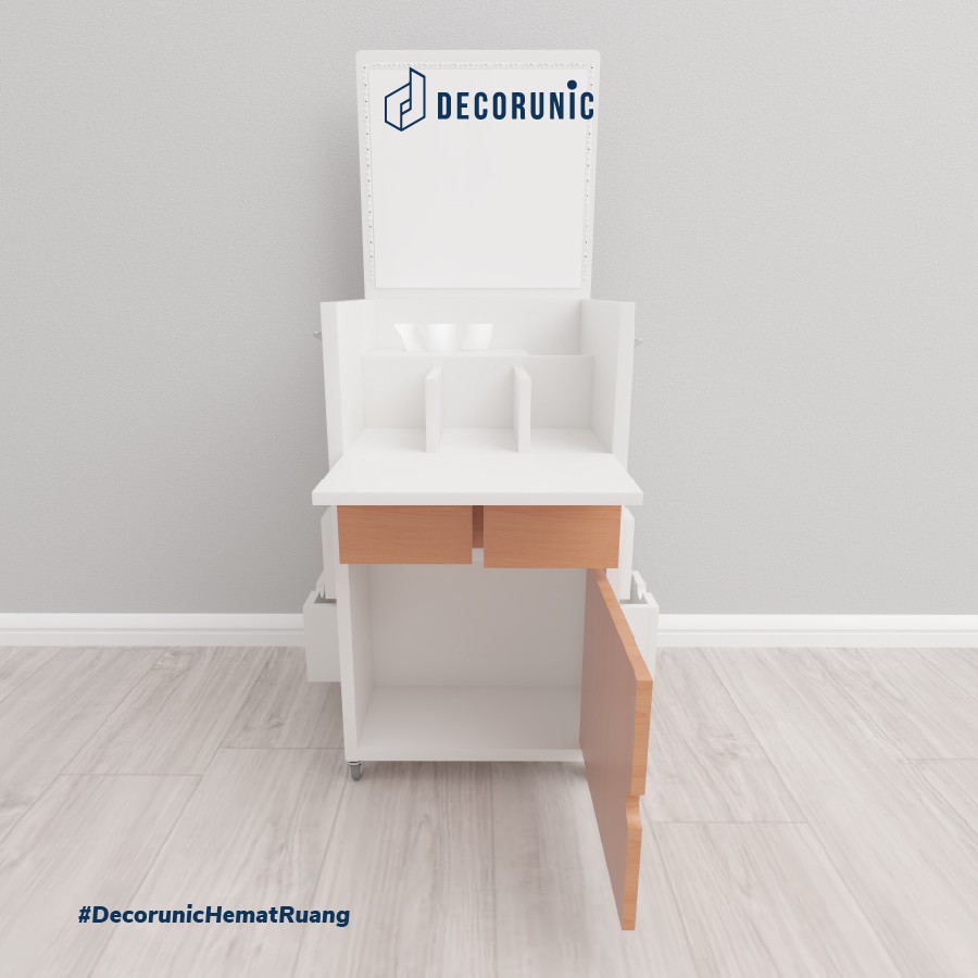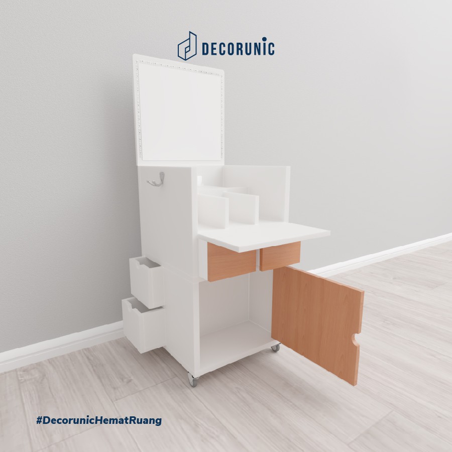 Decorunic Meja Rias Minimalis / Dressing Table with LED / Lemari Meja Rias Cermin Multifungsi -Ivana
