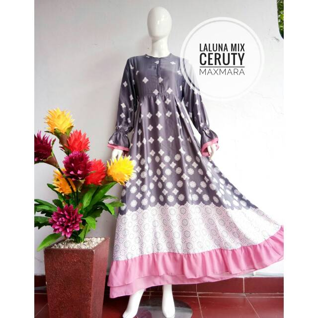 READY STOK GAMIS SYARI LALUNA BY SL MUSLIM BAHAN MAXMARA COMBI CERUTY PREMIUM ALL SIZE FIT XL