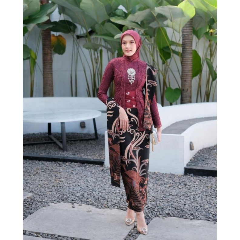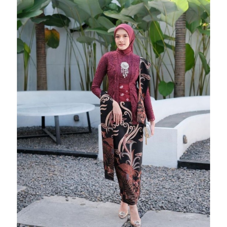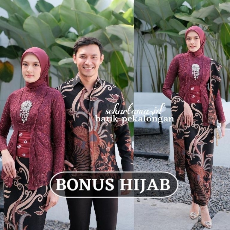 KODE N76A KEBAYA BATIK COUPLE AYU KUTUBARU MAROON GRATIS HIJAB KEBAYA MODERN KUTU BARU