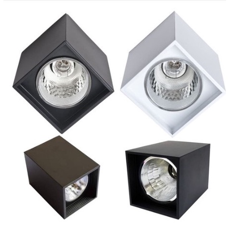 Downlight Outbow BULAT KOTAK 4" 5" / 4 Inch ( fitting e27 ) / kap lampu Sorot Plafon 4" inc - Hitam Putih