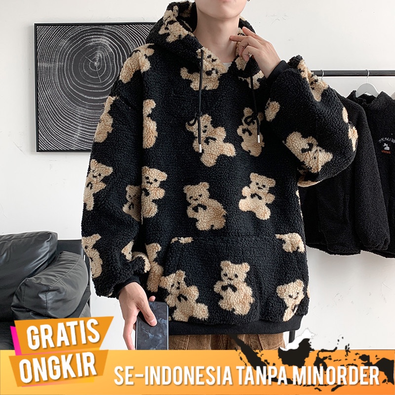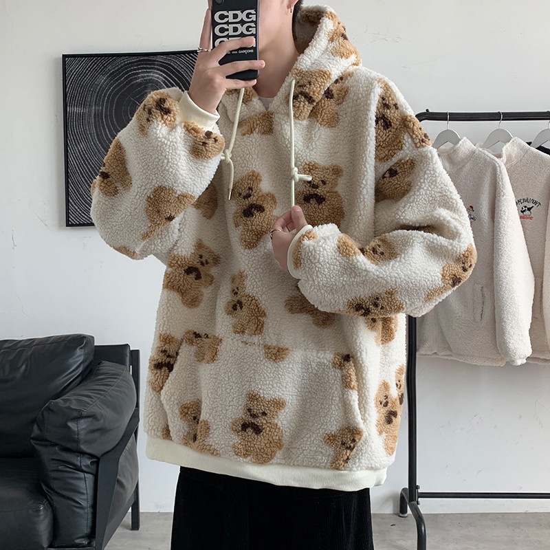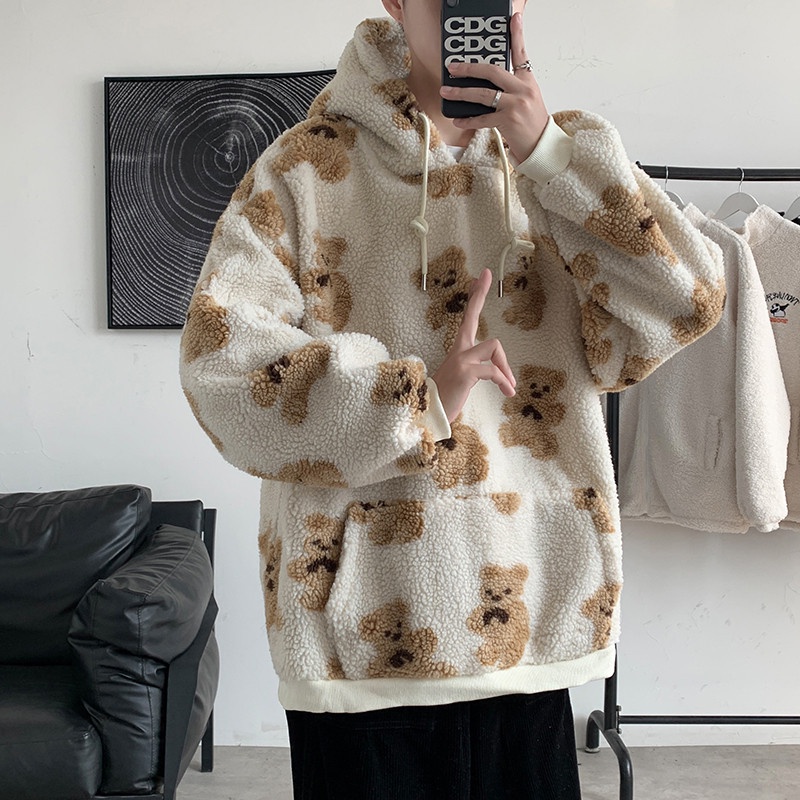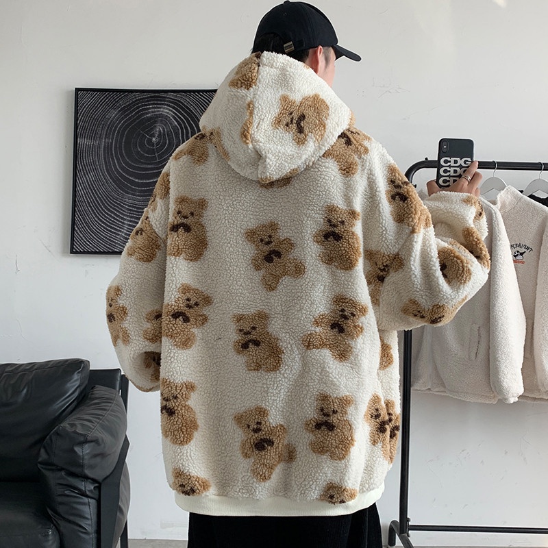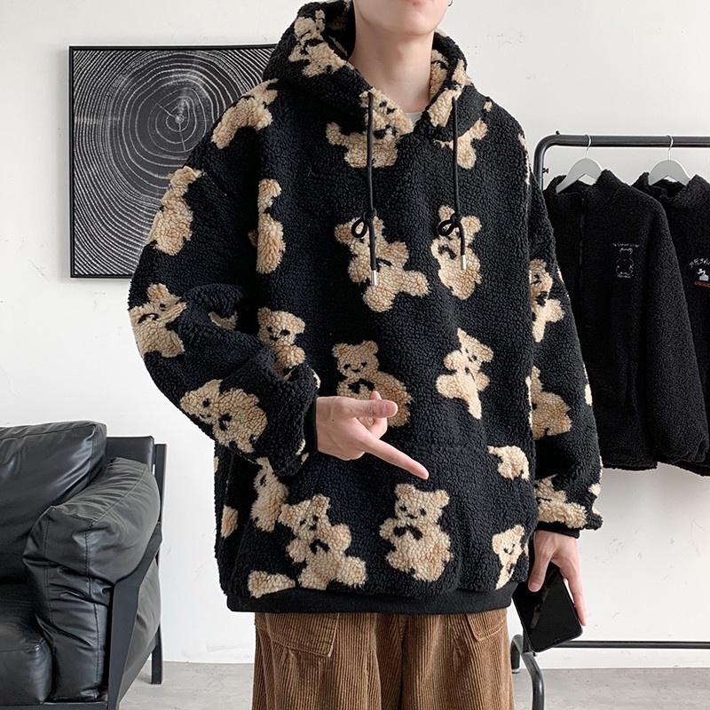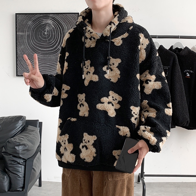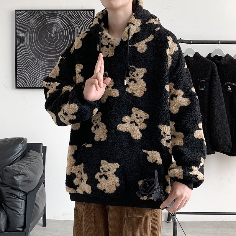 Outerwear Pria Domba Wol Sweatshirt Tren In Berkerudung Top Penuh Kartun cetak Hooe Pria Mantel Casual